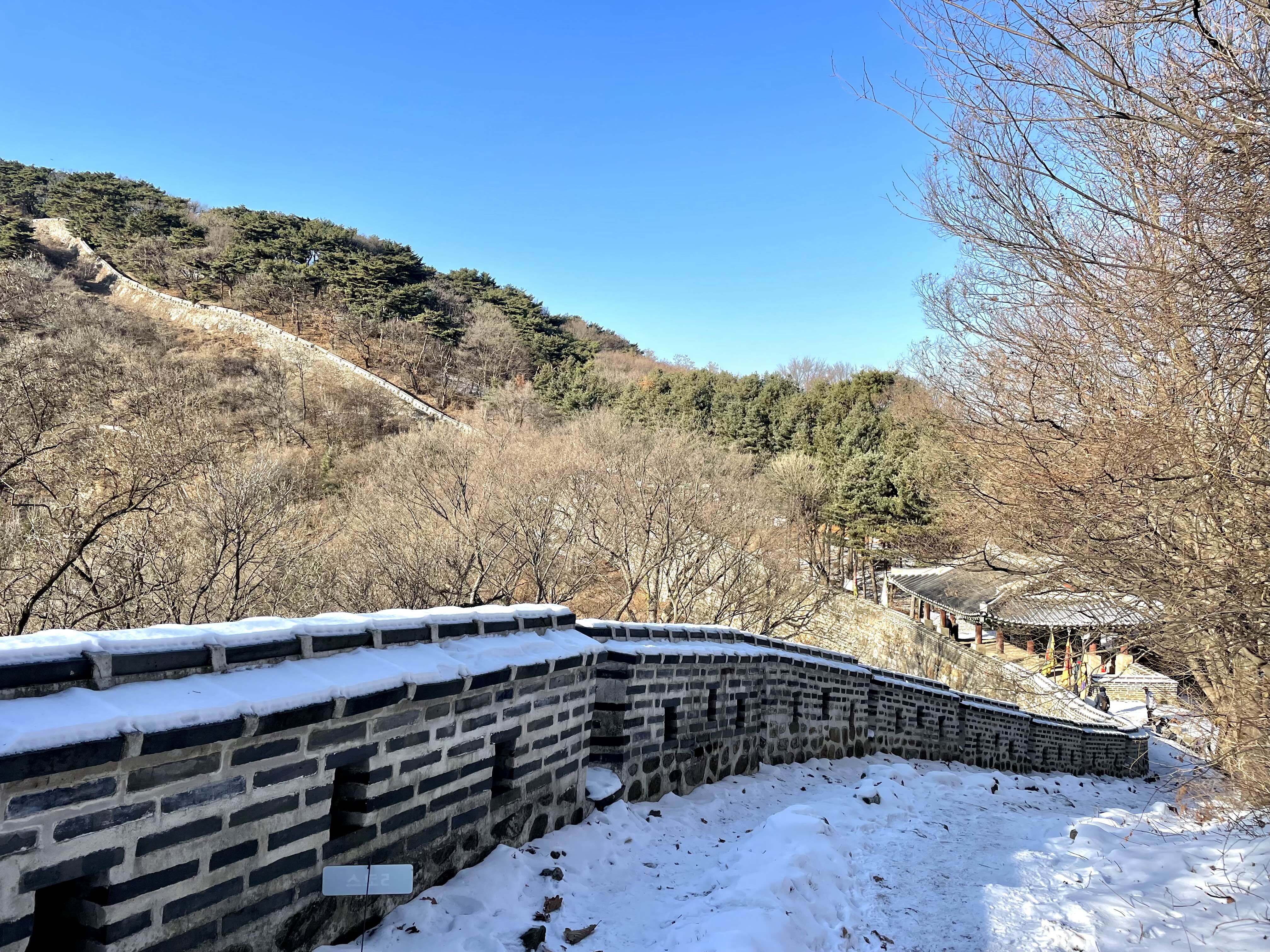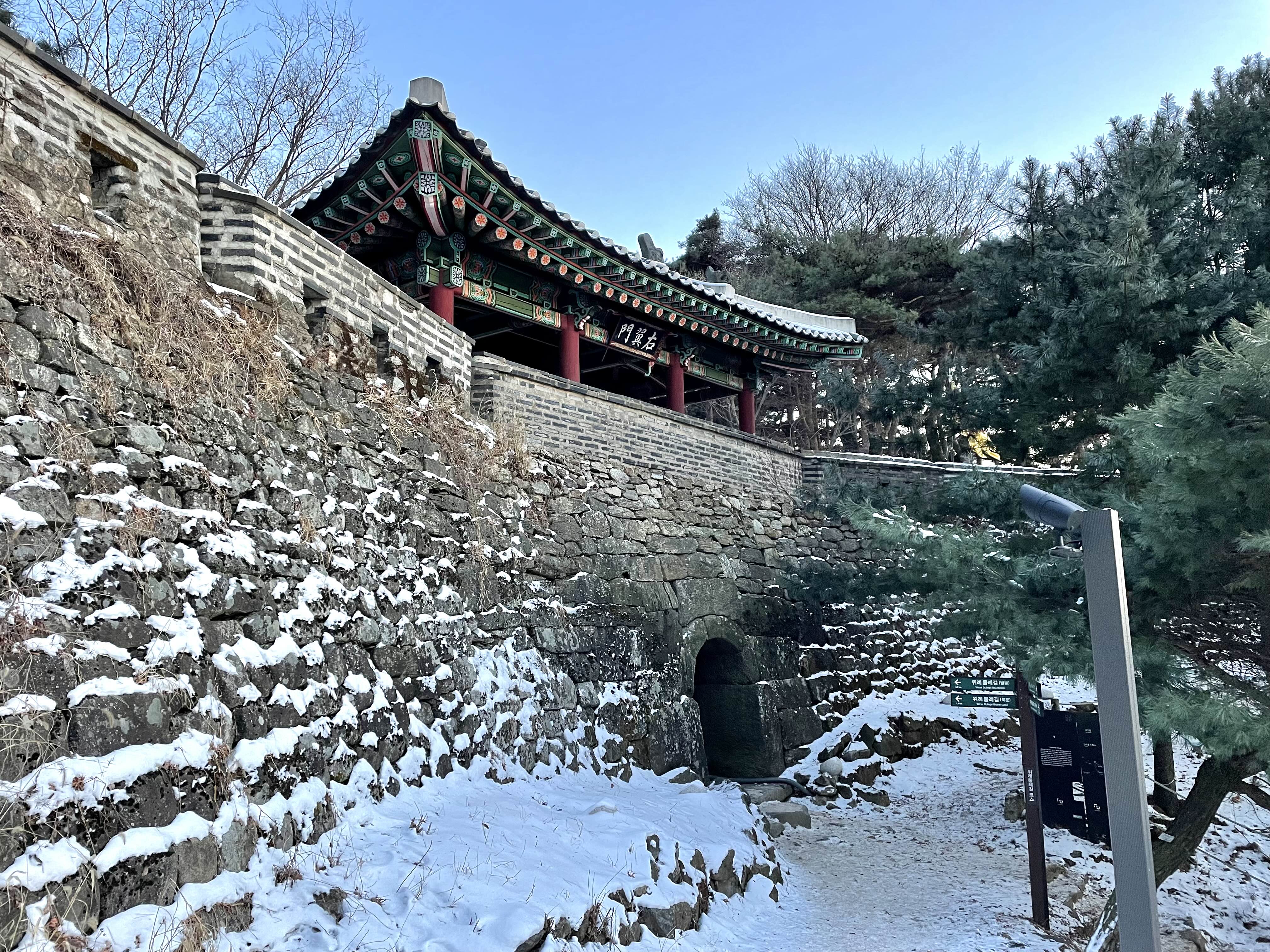 얇은 장갑을 뚫고 들어오는 한기에 손이 시리다. 30만 대병을 이끌고 북서풍처럼 내달린 청병도 언 손을 녹이며 이 계곡에서 공성을 준비하였을리라. 북문이 가까워진다. 고골에서 북문에 이르는 길은 가파르다. 계단을 따라 오르다 보면 어느새 북문 앞에 설 수 있다