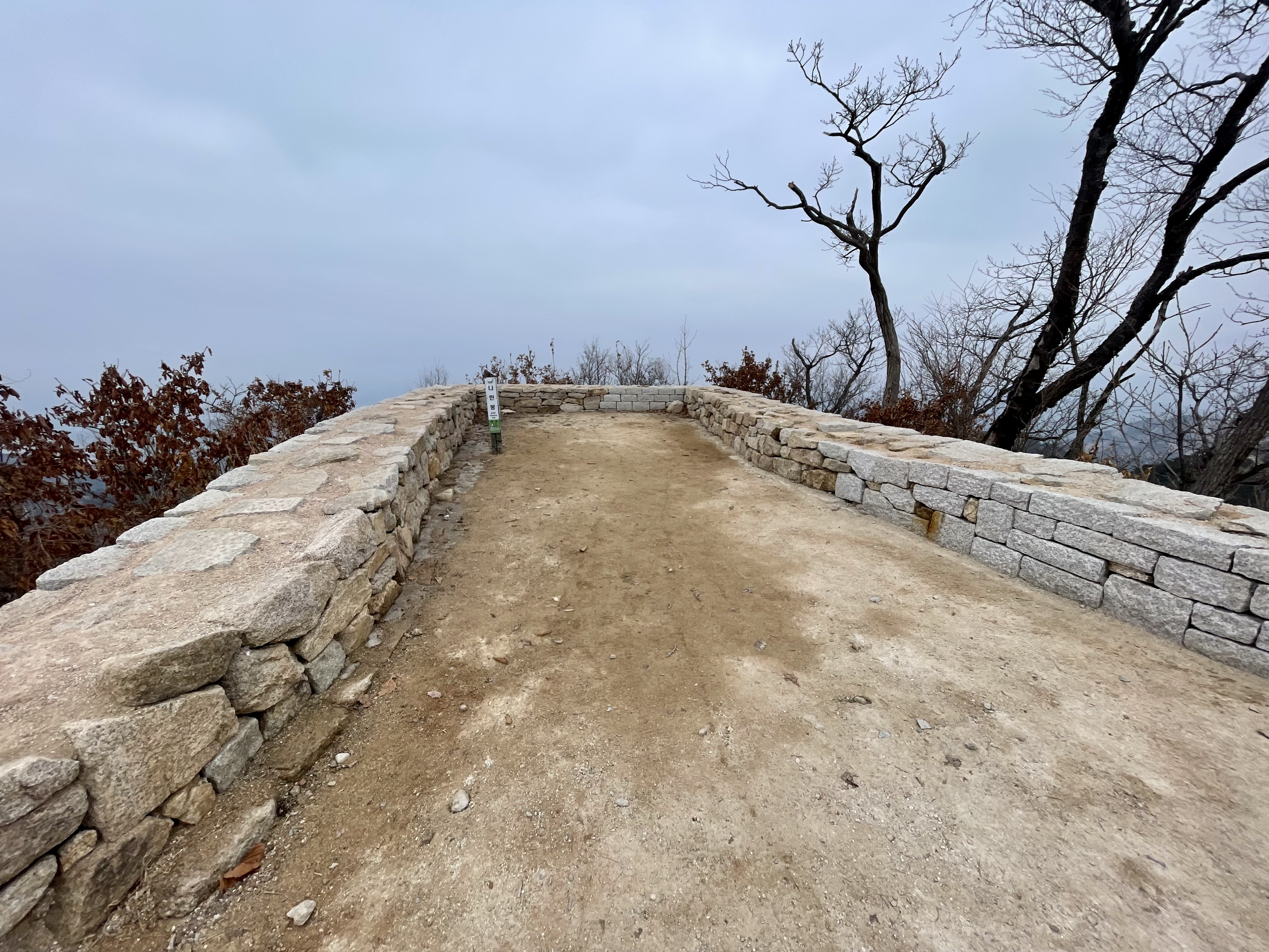 나월봉을 비켜오르면 이내 나한봉에 이른다. 예전에는 나월봉에서 곧바로 남장대로 올라 청수동암문으로 가다보니 그냥 지나치던 봉우리였다. 그때의 기억으로 그냥 지나치려고 하는데 성체가 돌출된 모습 위로 산객들이 제법 보인다. 우회로로 가는 걸 접고 곧바로 나한봉으로 오른다. 나한봉 정상은 치성이 복원되어 있고 안내판이 치성에 대해 설명해준다.