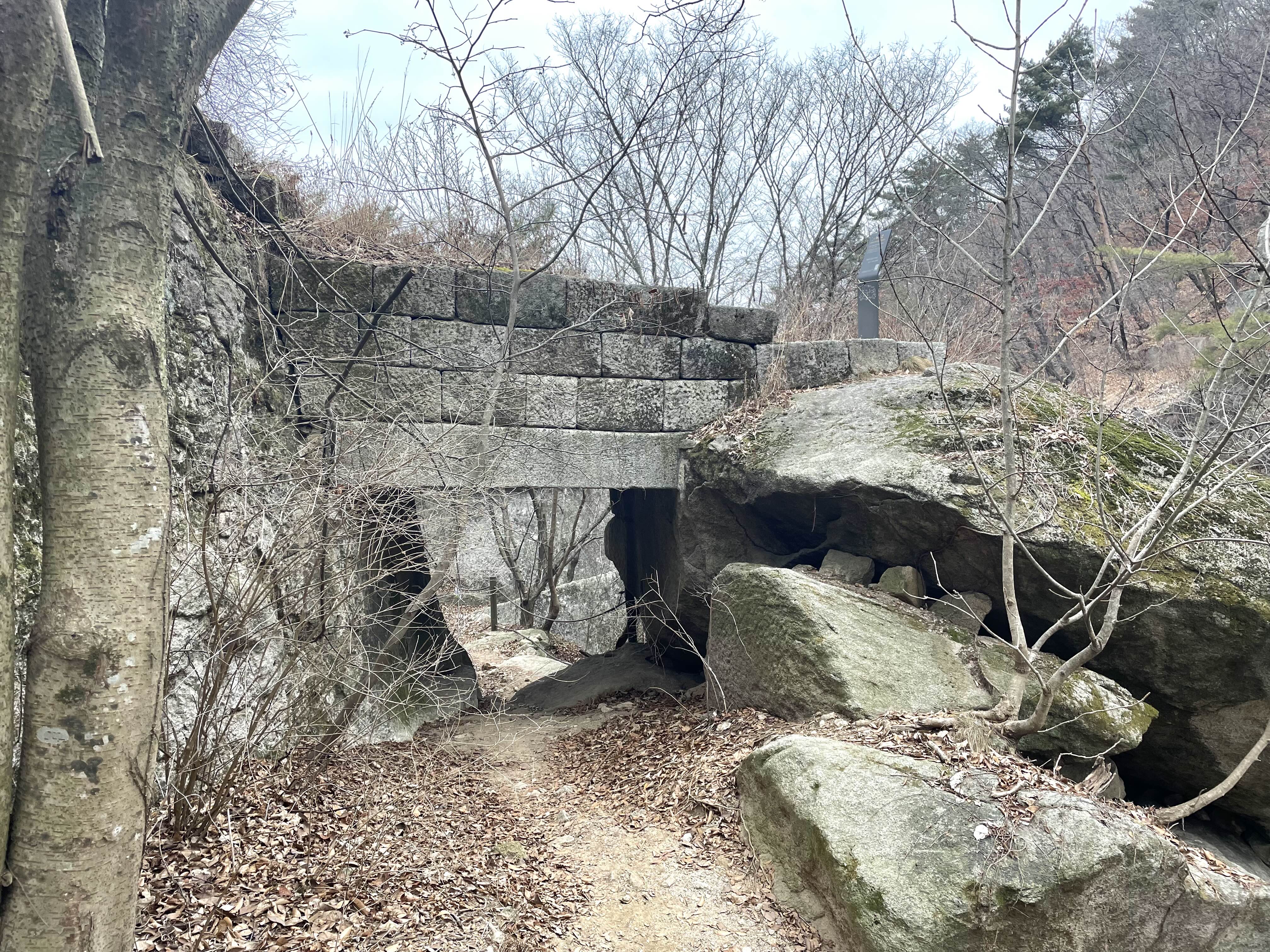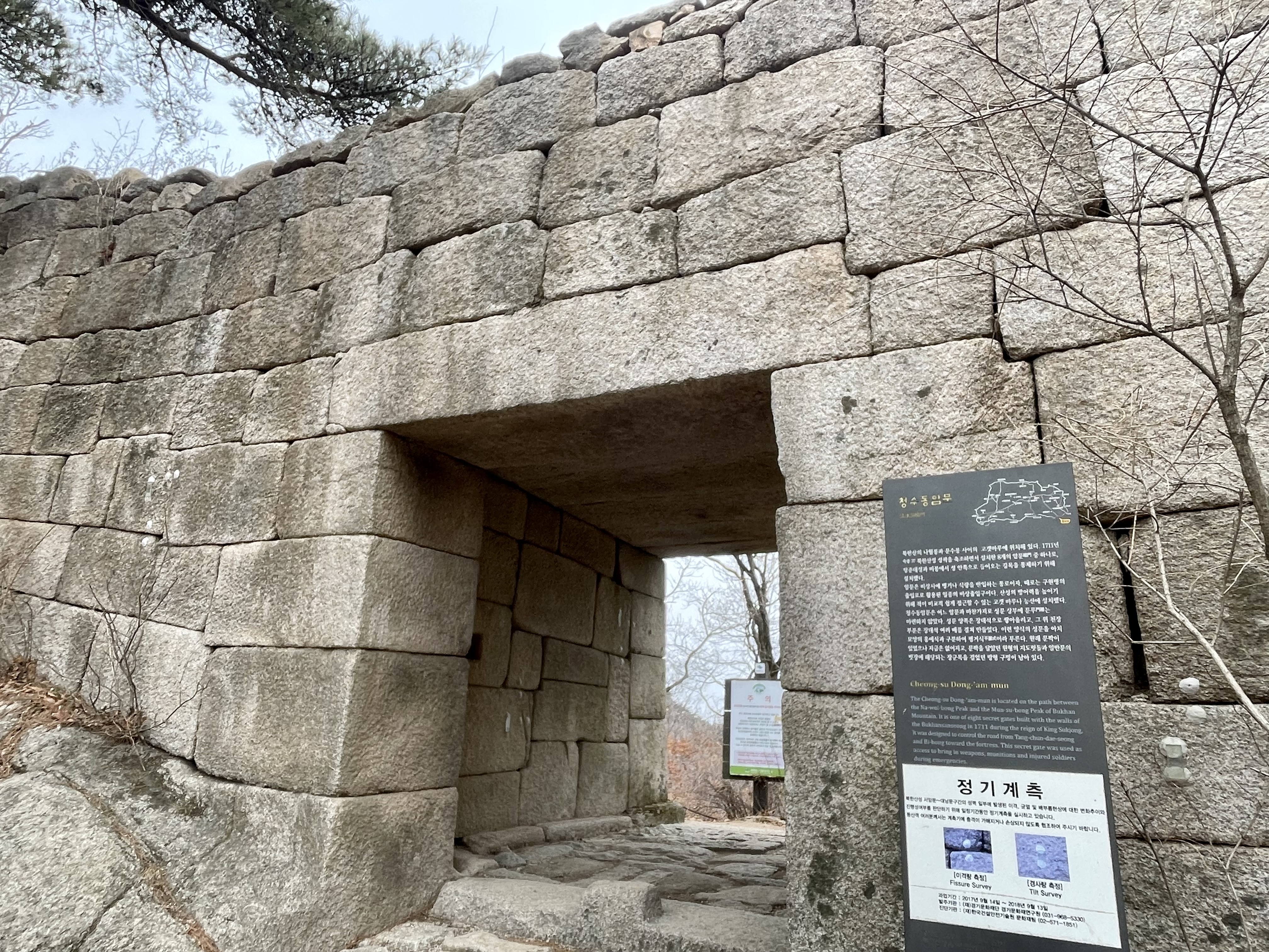 의상능선에 숨은 세 개의 성문 중 마지막 성문에 도착했다. 가사당암문을 출발해 2.2키로가량 되는 거리를 한시간 반만에 도착했다. 청수동암문은 한양도성과 연결되는 문이다. 인왕산구간에서 기차바위를 따라 내려오면 탕춘대성과 이어진다. 상명대학교를 뒤를 두르고 이어지는 탕춘대성은 비봉으로 연결되어 비봉능선 마지막 봉우리 문수봉으로 오른쪽으로 끼고 오르면 바로 청수동암문이다. 주말에 북한산을 오르면 으례 비봉과 사모바위를 거쳐 문수봉 암벽으로 기어오르거나 계곡길로 오르면 청수동암문을 거치게 되어 자주 만나던 성문인데 오늘은 의상봉으로 올라 만나게 되었다. 대남문에서 백운동암문까지 이어지는 길은 거의 평지 수준의 성안길이다. 북한산성 종주의 하이라이트를 지나왔으니 내쳐 마무리 하자.