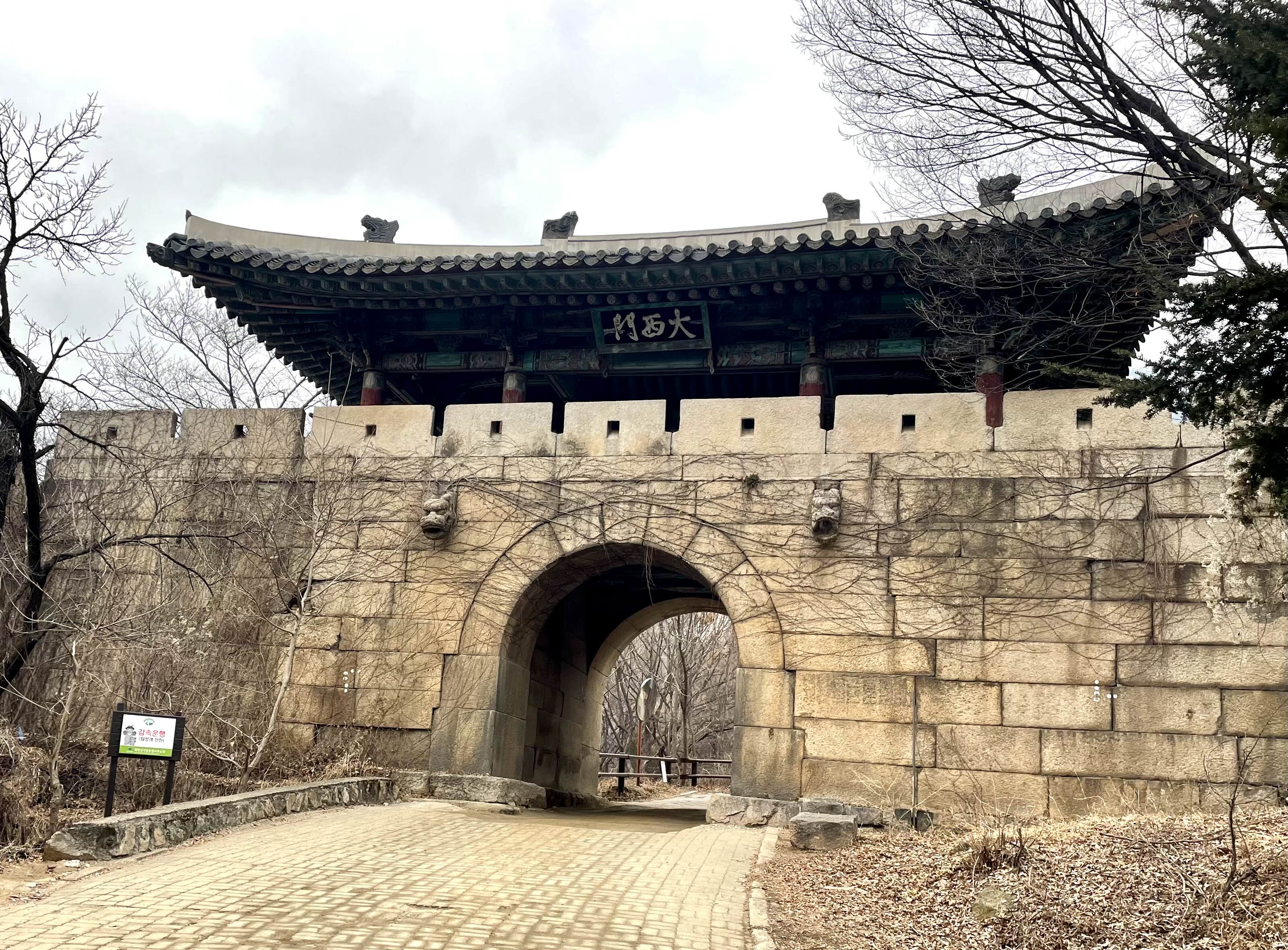 의상봉 갈림길에서 크게 구비진 언덕을 걸어오르면 대서문이 기다리고 서있더. 산성을 완비한 숙종이 바로 이 문을 통해 성내로 들어갔다고 한다. 북한산성 정문으로서 축성당시 16개 성문 중에서 가장 낮은 지점에 위치한다. 성문 위에 누각은 1958년에 복원하였음에도 가장 오래되었다니 산성이 축성되고 나서 번듯하게 대우를 받지 못하다 일제에 의해 훼손되었다고 한다.