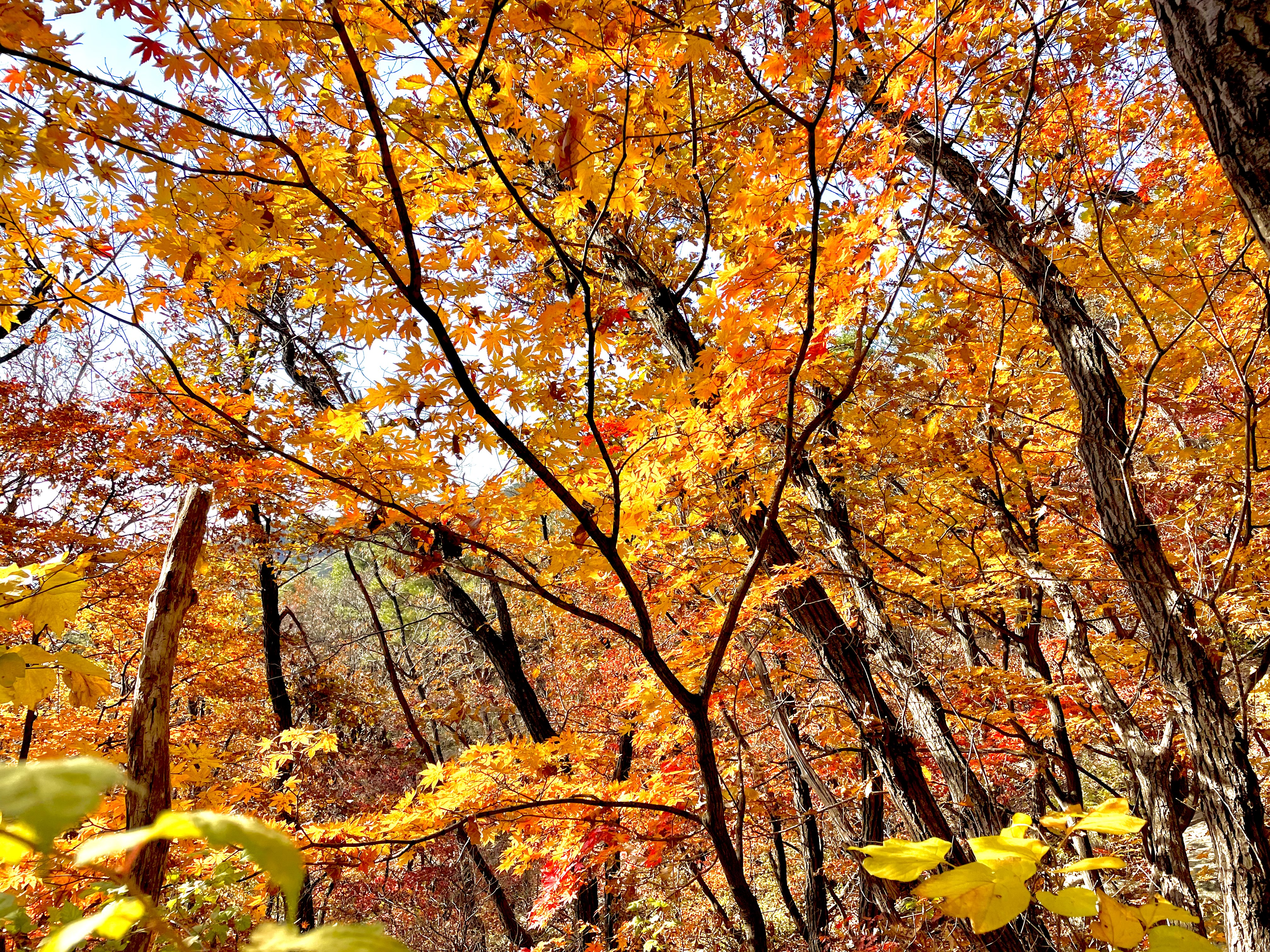 날마다 짧아지는 늦가을 햇살에 노랗게 물든 단풍이 우리를 반겨준다. 늦었지만 오랜만에 찾은 도봉산행에서 잎사귀가 오그라들지 않고 예쁘게 물들은 단풍을 보니 그나마 다행이다. 여성봉으로 오르는 북사면 길에는 바싹 마른 잎사귀가 길을 덮었는데, 동남향으로 완만하게 내려가는 우이암방향 계곡엔 아직까지 늦단풍이 산객을 맞아준다.
