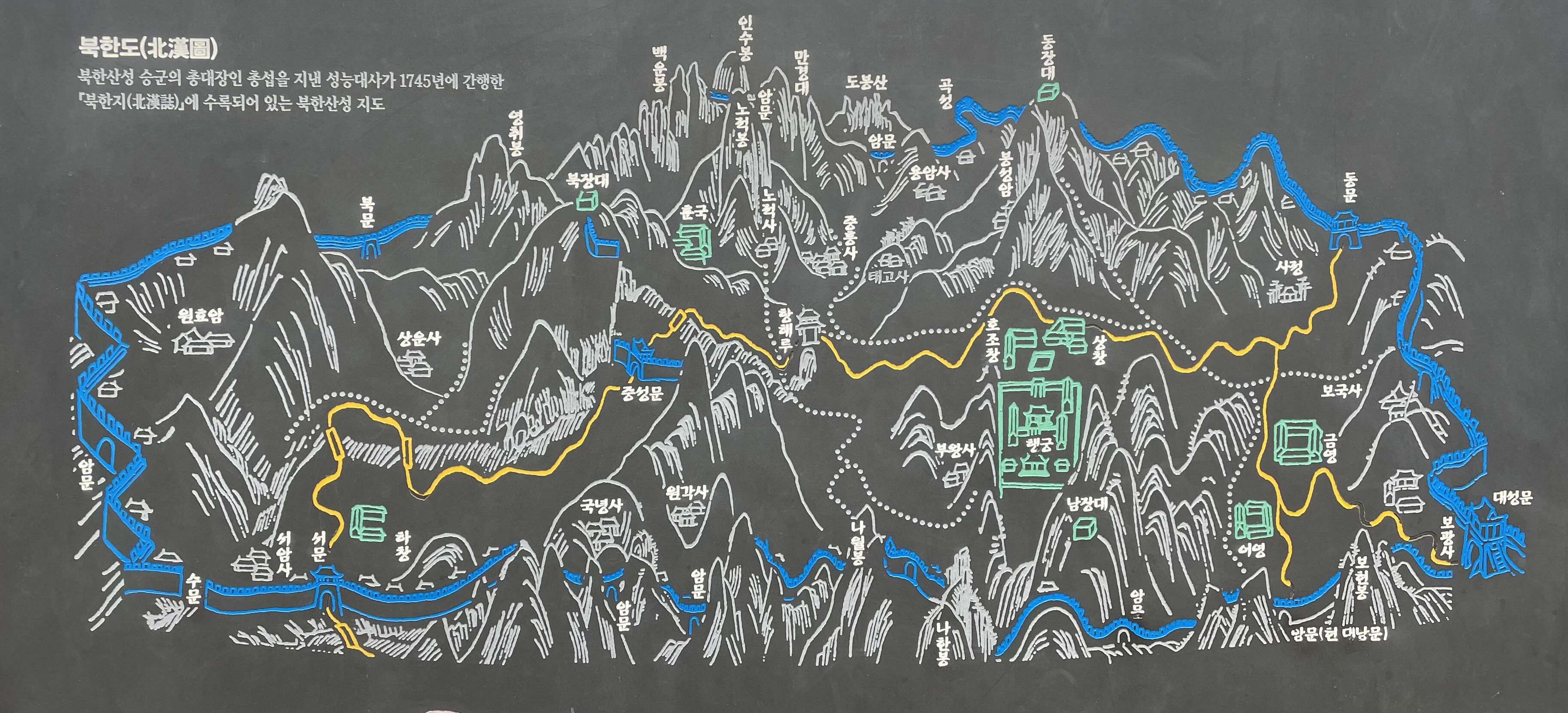 조선은 개국과 동시에 한양천도를 감행하였고 법궁인 경복궁을 세우면서 사대산을 잇는 도성을 함께 축성하였다. 이후 이백년 가까이 태평성대를 구가하다가 왜적의 침략을 받아 조선 강토가 왜적의 말발굽아래서 처참하게 유린된 현장을 목도한 인조는 한양 남쪽에 있는 남한산성을 세워 도성방비를 강화하였다. 하지만 이번에는 북방에 오랑케로 치부되던 여진족이 청나라를 세우고 다시 조선 강토를 유린하기에 이른다. 이에 인조의 손자인 숙종은 북방 경계를 강화하고자하는 염원을 담아 북한산성을 축성하여 북방의 오랑케 침략에 대비한다. 하지만 남한산성과 마찬가지로 방어를 목적으로 한 기능은 발휘하지 못하였다.