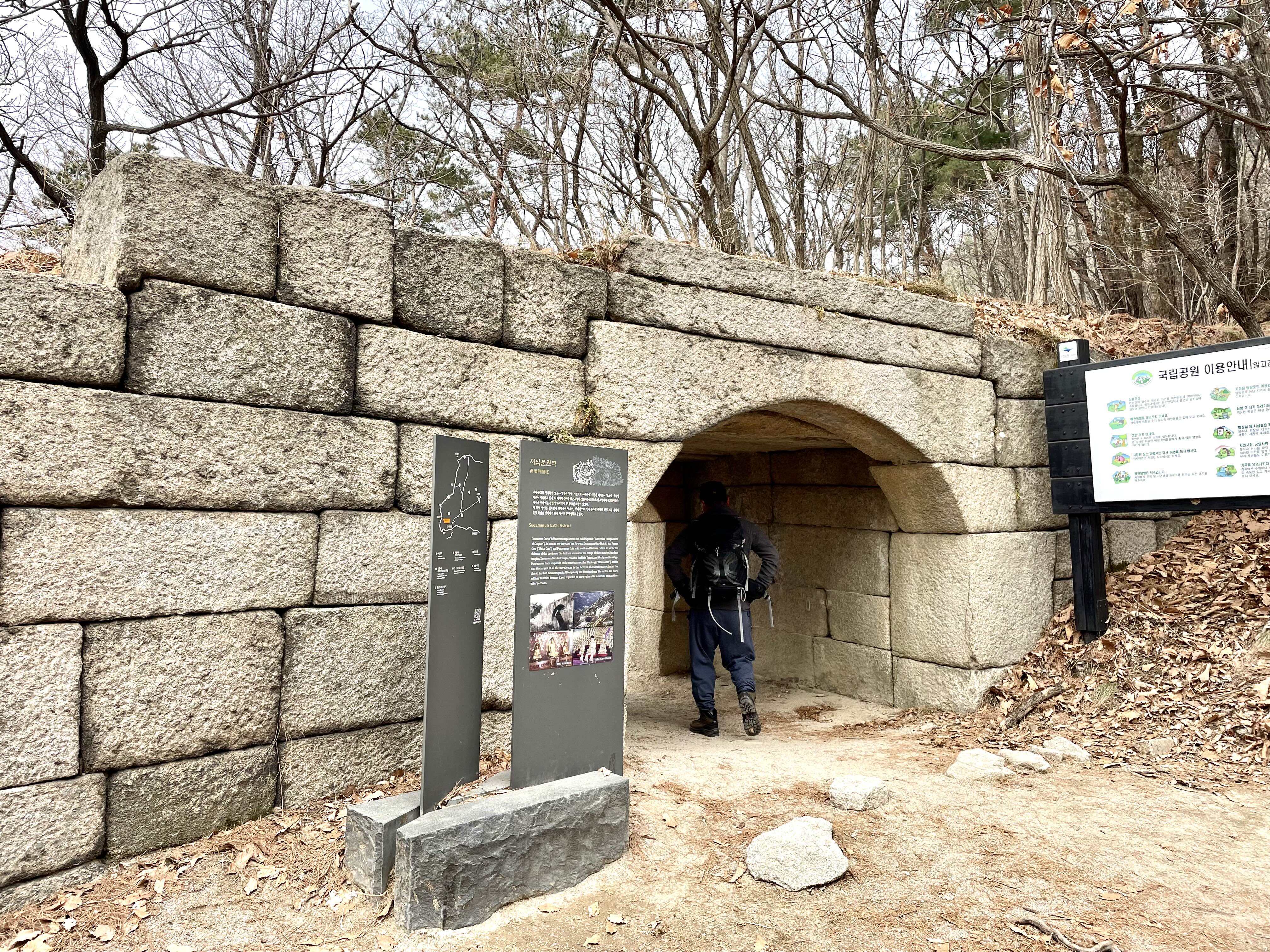 북한산성 종주 네시간만에 10번째 성문, 용암문에 도착용암문은 북한산성의 대동문 북쪽에 있는 암문으로, 산성이 축성된 1711년(숙종 37년)에 지어졌다. 용암봉 아래에 있어서 용암봉암문이라고도 부르며 우이동으로 통하는 관문이다. 용암문부터는 서서히 노적봉과 만경대 사이 로 난 등로를 타고 올라야 한다. 노적봉 갈림길이 가까워지면서 등로엔 크고 작은 돌들이 많아 산행이 불편하다.