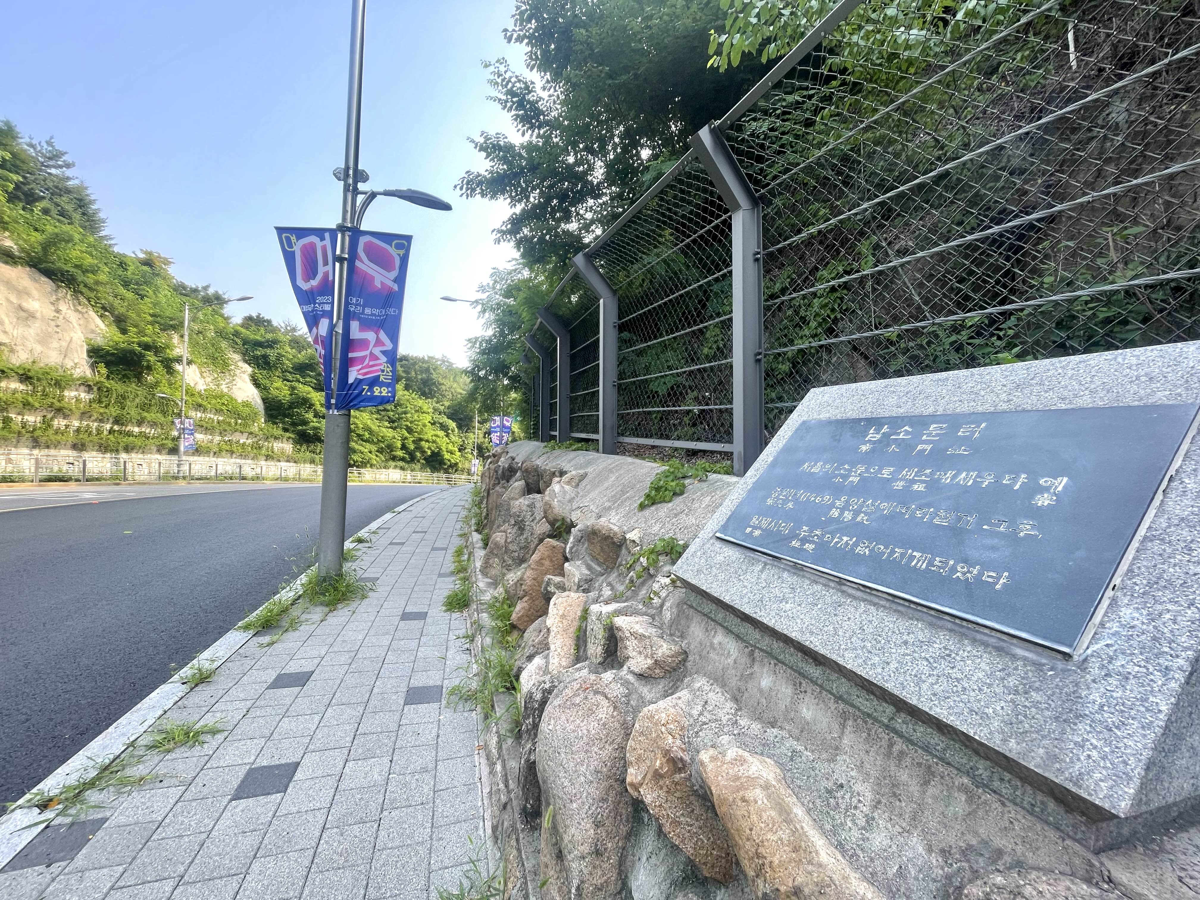 지리산 화개재로 내려가는 계단 만큼이나 길다. 아래에서 올라오는 분들은 숨을 헉헉이며 올라온다. 그동안 걸어본 순성길은 국립극장 아래에 있는 횡단보도를 건너 곧바로 반얀트리 호텔 안으로 난 길을 걸었다. 그러다 보니 남소문이 서있던 자리를 지금도 지키고 있는 남소문 표지석을 지나치게 된다.