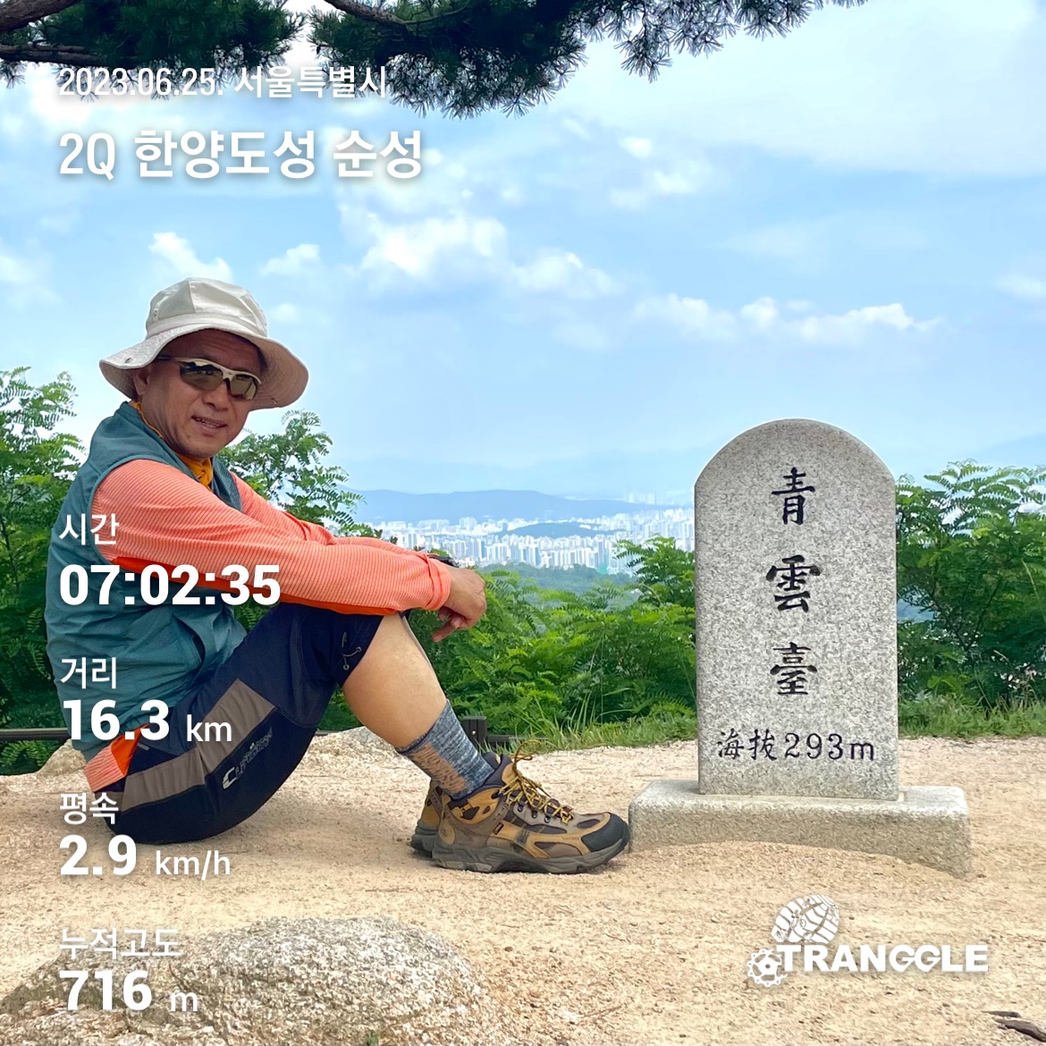 숭례문에서 시작은 오늘의 순성놀이가 백악구간에 들어서면서 녹녹해보이지 않는다. 발걸음은 자꾸 느려지고 땀에 절어버린 몸은 천근이다. 성북동에서 와룡공원까지 오름구간은 숨이 턱에 받치고, 갈증으로 자주 물을 찾게된다. 말바위 안내소를 지나 숙정문에서 한동안 땀을 들이고 출발하는데 허벅지와 장딴지에 자꾸 쥐가 올라오려는 조짐이 나타난다. 가급적 천천히 다리에 힘이 덜 가도록 걸어오르는데 점점 더 심각해진다. 하는 수 없이 청운대에서 아예 신발을 벋고 그늘에서 긴 시간 휴식을 가져본다.