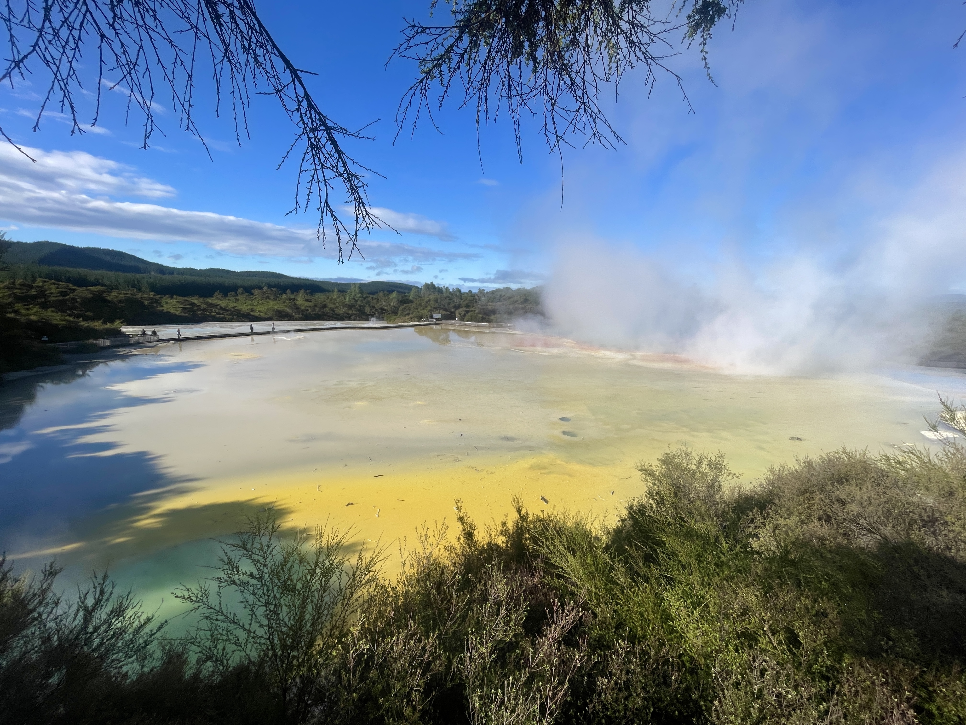 어제 코를 찌르는 유황냄새가 진동하자 필립은 로토루아에 다다르고 있다고 했다. 로토루아는 두 곳의 화산지대 투어코스가 있다.