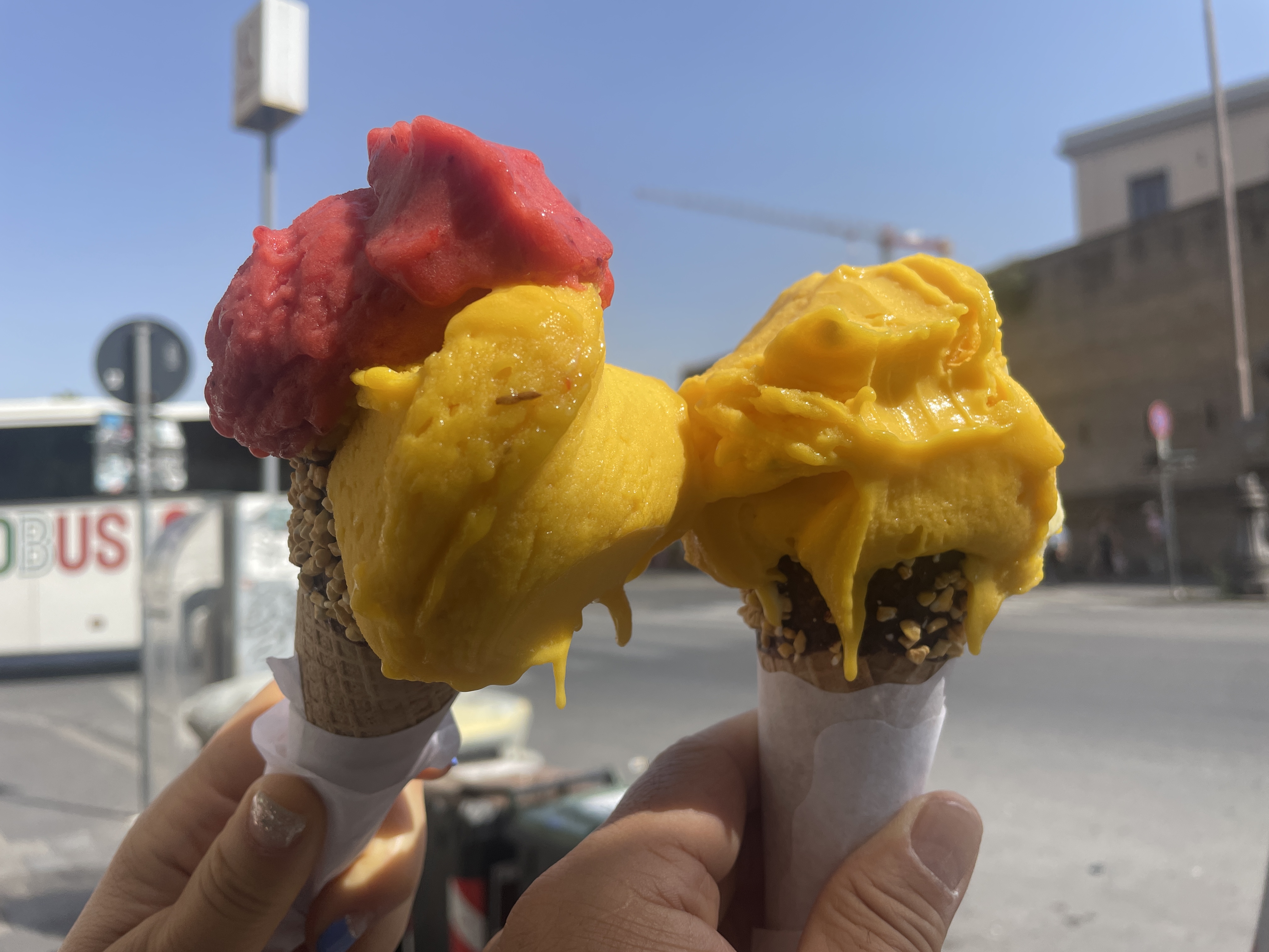 광장을 빠져나오면서 젤라또를 먹어줘야 한다는 어느 유튜버의 제안에 따라 올드브릿지를 검색해 찾아간다. 날씨가 너무 더워 젤라또를 받아서 의자에 앉기도 전에 녹아내리기 시작한다. 달꼼하고 차가운 기운 갑자기 식도를 얼려버리는 머리가 아뜩해진다. 젤라또를 해치우고 숙소 근처에 맛집을 찾아보려니 때를 너무 놓친 거 같다. 시장이 반찬이라지 않는가, 젤라또 옆에 있는 식당을 지나는데 유창한 한국말로 '어서오세요, 맛있어요!!' 한다. 우리는 서슴없이 안으로 들어간다.