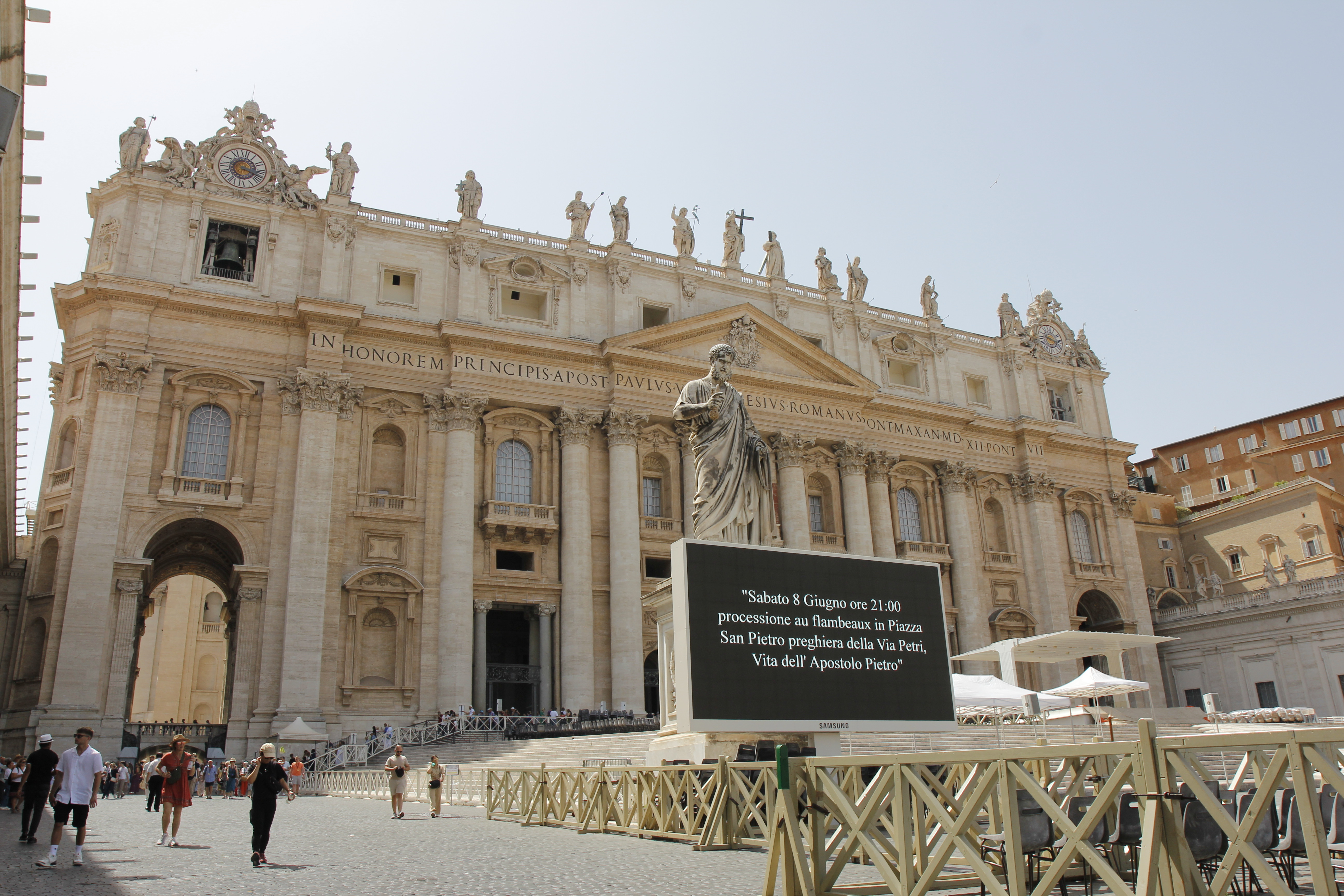 시스티나성당 관람을 끝으로 우리는 바티칸박물관 관람을 마치고 성 베드로성당으로 넘어온다. 박물관 티켓을 가지고 있으면 성당으로 이어지는 통로를 따라 손쉽게 베드로성당으로 들어올 수 있다. 오전 내내 우리에게 작품 설명과 안내를 맡았던 지식가이드는 베드로성당 옆에 한가한 곳으로 우리를 데려와 가이드 안내를 마무리한다. 바로 2023년 8월에 안치된 김대건안드레아 성인 서 계신 곳에서 가이드와 헤어지고 우리는 성당 안으로 입장하였다. 성당을 들어서 오른편에 보여야 할 피에타는 보이지 않고 하얀 장막이 드리우고 있다.