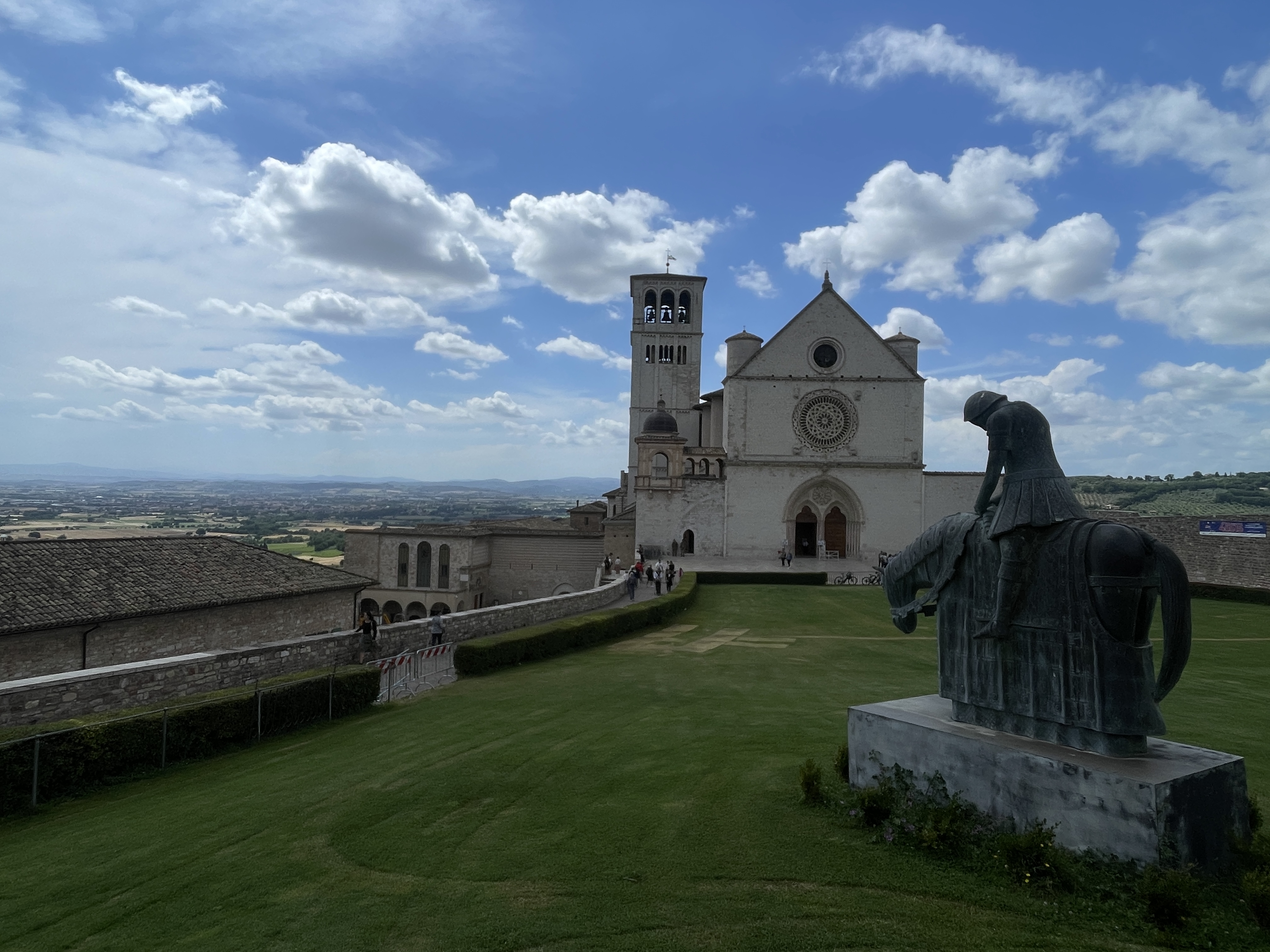 상부성당 앞에는 넓은 정원이 마련되어 있고 정원 끝자락에는 힘이 하나도 없어 보이는 말을 탄 성인의 모습을 형상화한 기마상이 서있다. 젊은 시절 훌륭한 기사가 되겠다는 야심을 품은 것을 반성하며 낮은 자를 위해 싸우는 그리스도의 기사가 되겠다는 다짐을 형상화하였다고 한다.