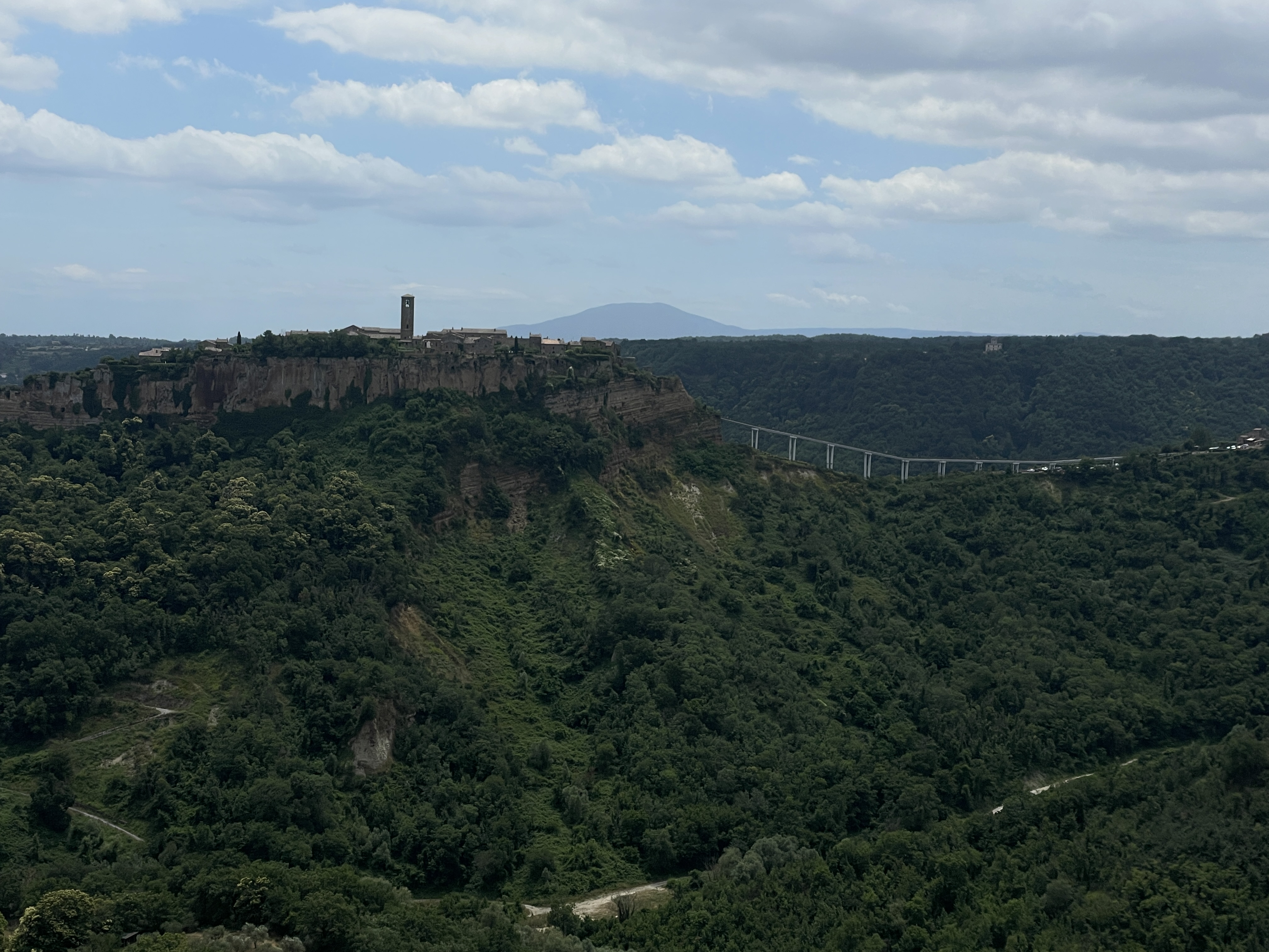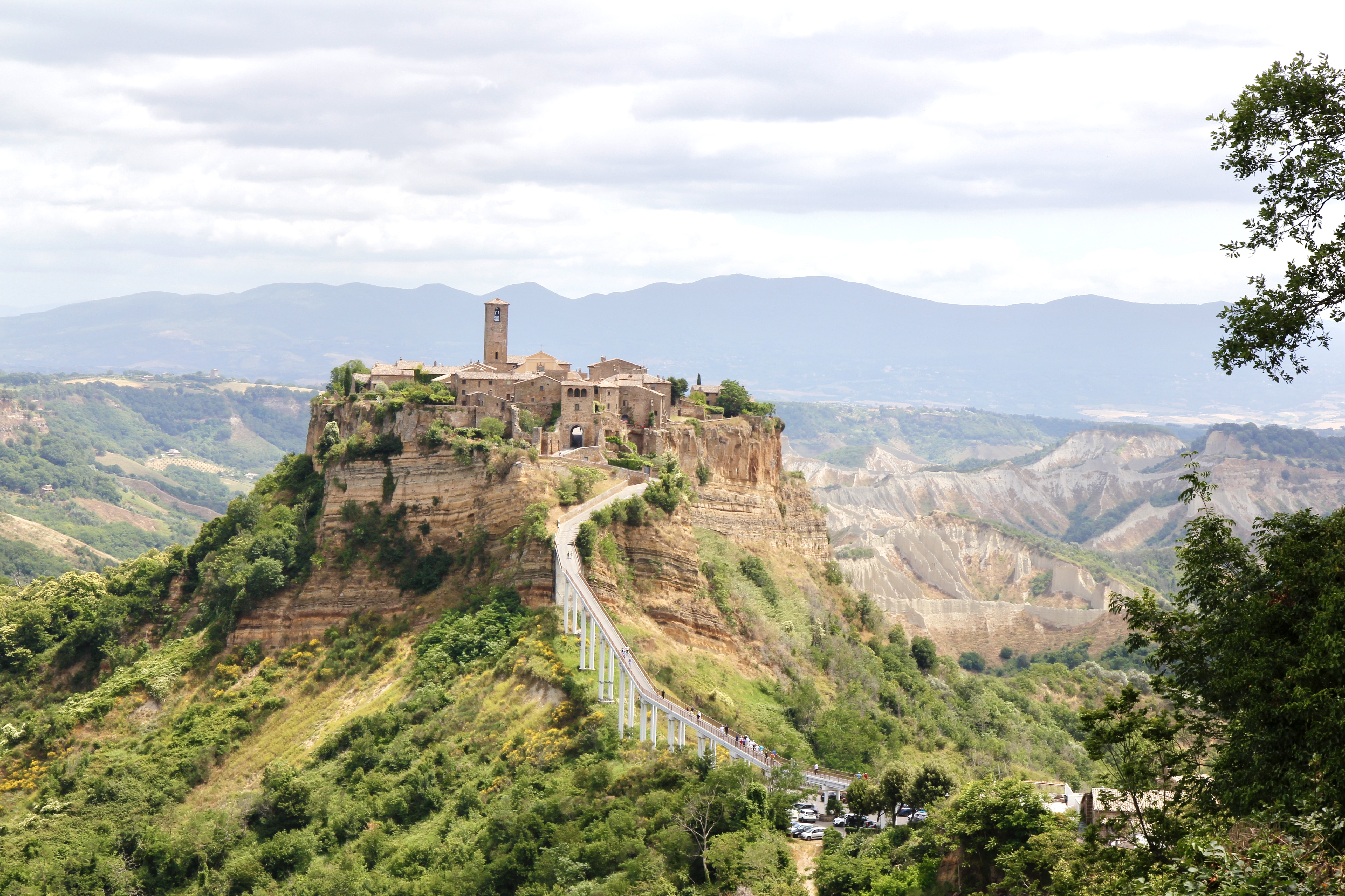 치비타 디 반뇨레조는 지금도 침식활동이 진행되고 있다. 17세기 발생한 지진으로 도시가 거의 붕괴되어 지금같은 모습을 가지고 있으나 언젠가는 사라질 운명의 도시로 알려져 있으며 10여 명의 주민만이 남아있다고 한다. 마을로 들어서기 전에 전망대에서 바라보는 모습은 가히 비현실적인 모습 그대로다. 이 도시로 가려면 주차장 차를 놓고 걸어가거나, 셔틀버스를 타고 가는 방법이 있다. 우리는 20여분 정도 걸리는 거리여서 걷기로 한다.