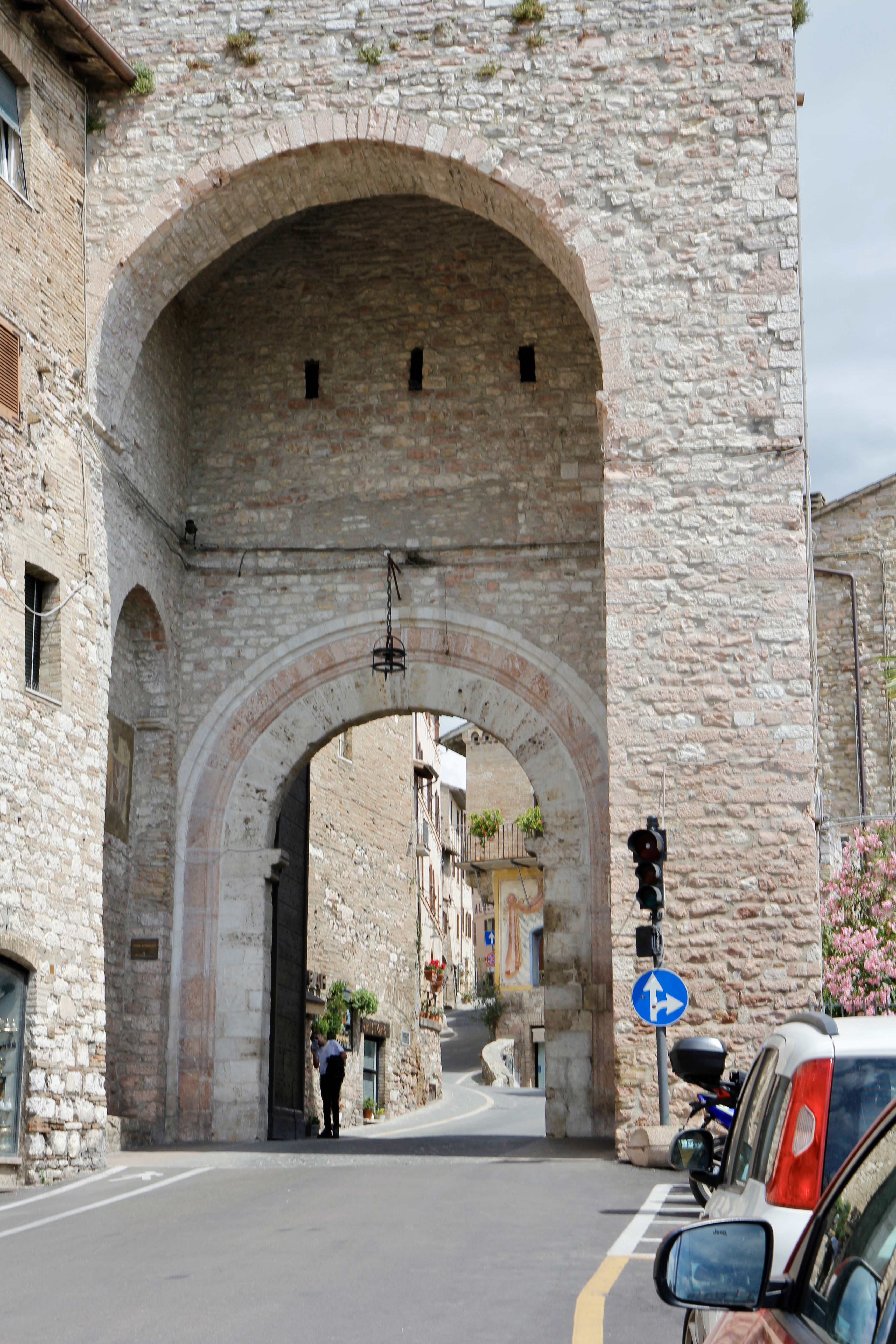 천공의 성에서 한 시간 반가량 네비가 알려주는 길을 따라 차를 몰고 가는데 낯이 익은 마을 모습이 눈에 들어온다. 아씨시에 도착한 것이다. 멀리서 보는 데도 성프란치스코성당이 다른 건물과 달리 눈에 확 들어온다. 마을 전체가 ZTL 구역이라 차를 가지고 들어갈 수 없어 미리 프란치스코성당에서 가장 가까운 주차장을 목적지로 설정하였다. 차를 주차하고 프란치스코성당 안내판을 따라 걸어간다.