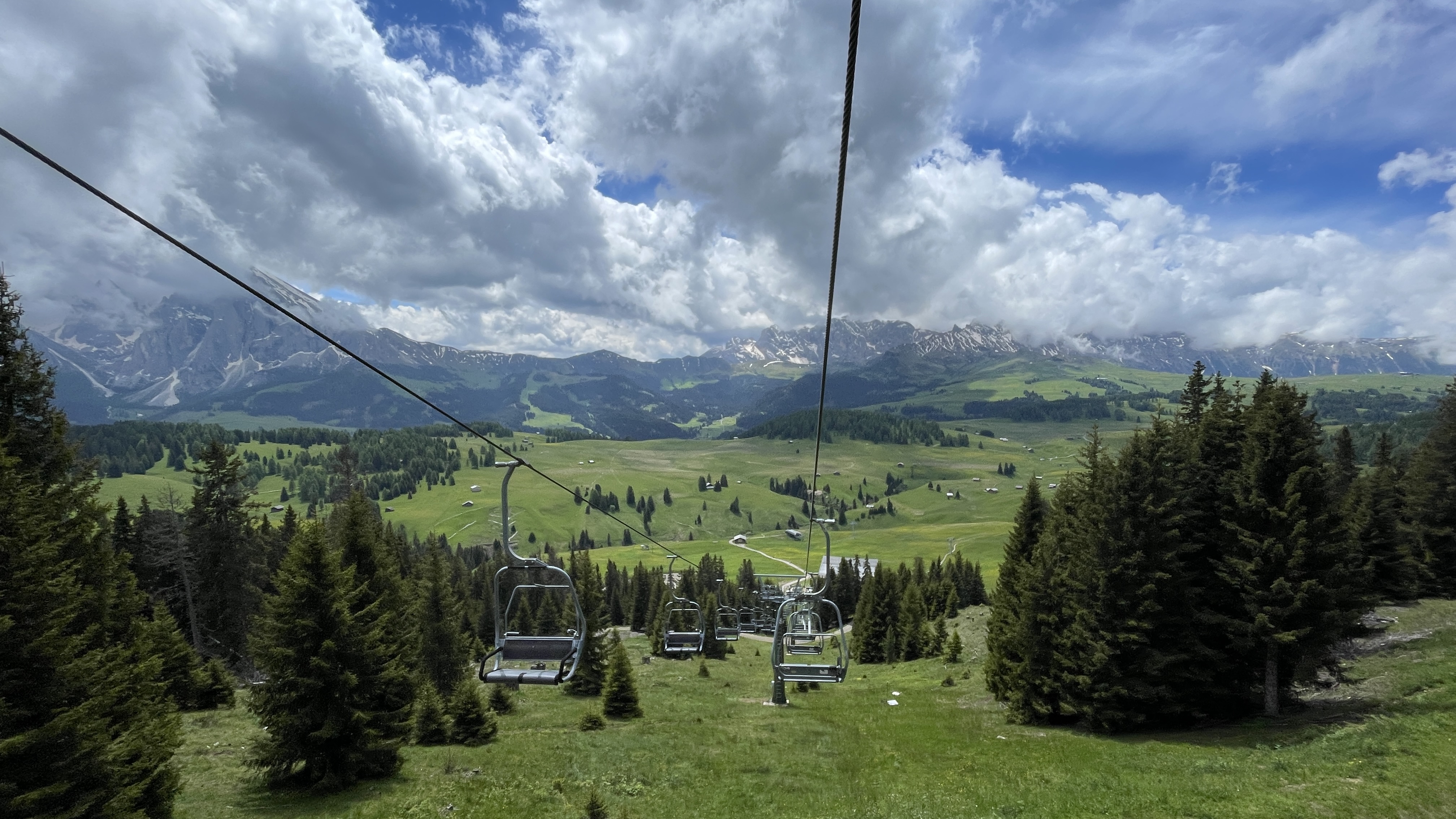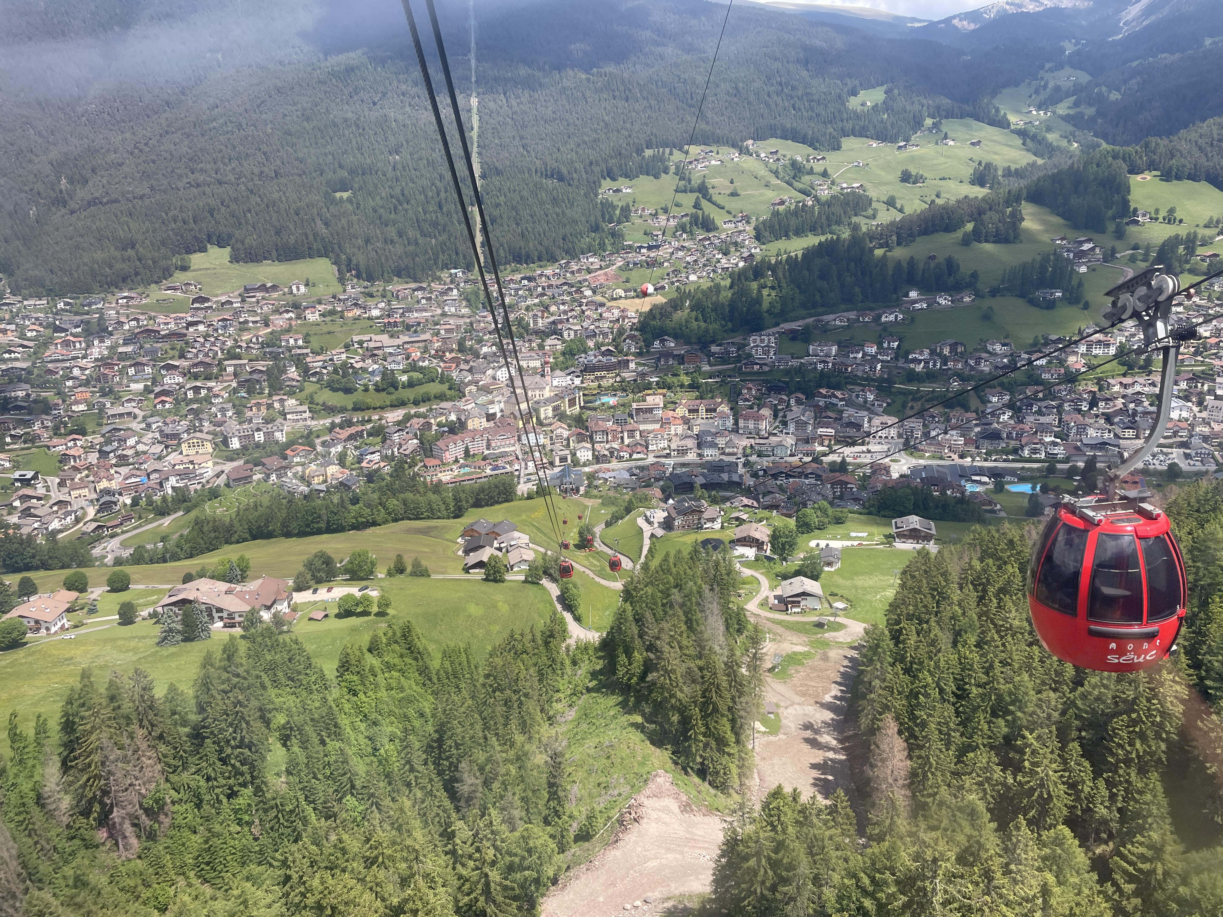 알페 디 시우시는 축구장을 160개를 만들어낼 수 있을 장도로 드넓은 대평원이다. 광활한 넓이인 만큼 접근하는 방법도 다양하다. 여러 곳에 시설된 케이블카, 차량으로 접근할 수 있는 도로들 그리고 트레킹 코스들이 다양하다. 세체다에서 내려오자마자 오르티세이에서 알페디 시우시로 가장 빨리 오를 수 있는 몽트섹(Mont Seuc)향 빨간색 리프트를 탄다. 리프트가 빨간색으로 도색된 앙증맞은 사이즈엿서 우리 둘만 탑승한다.