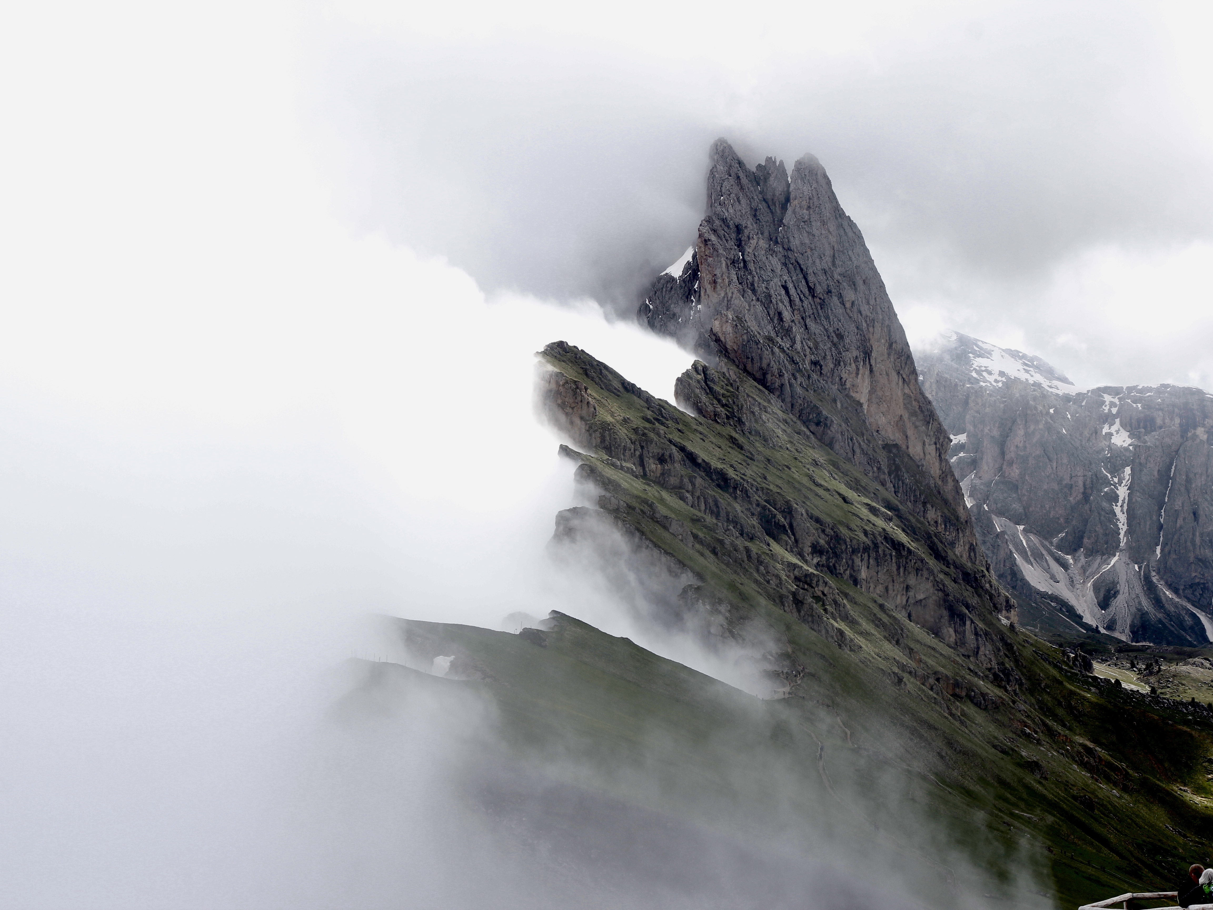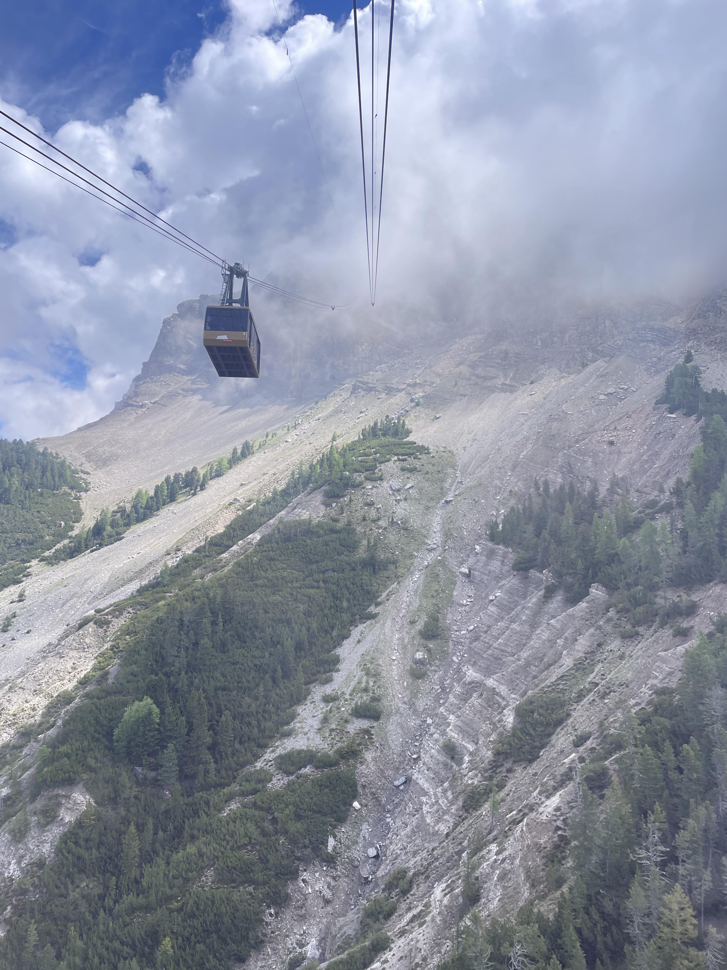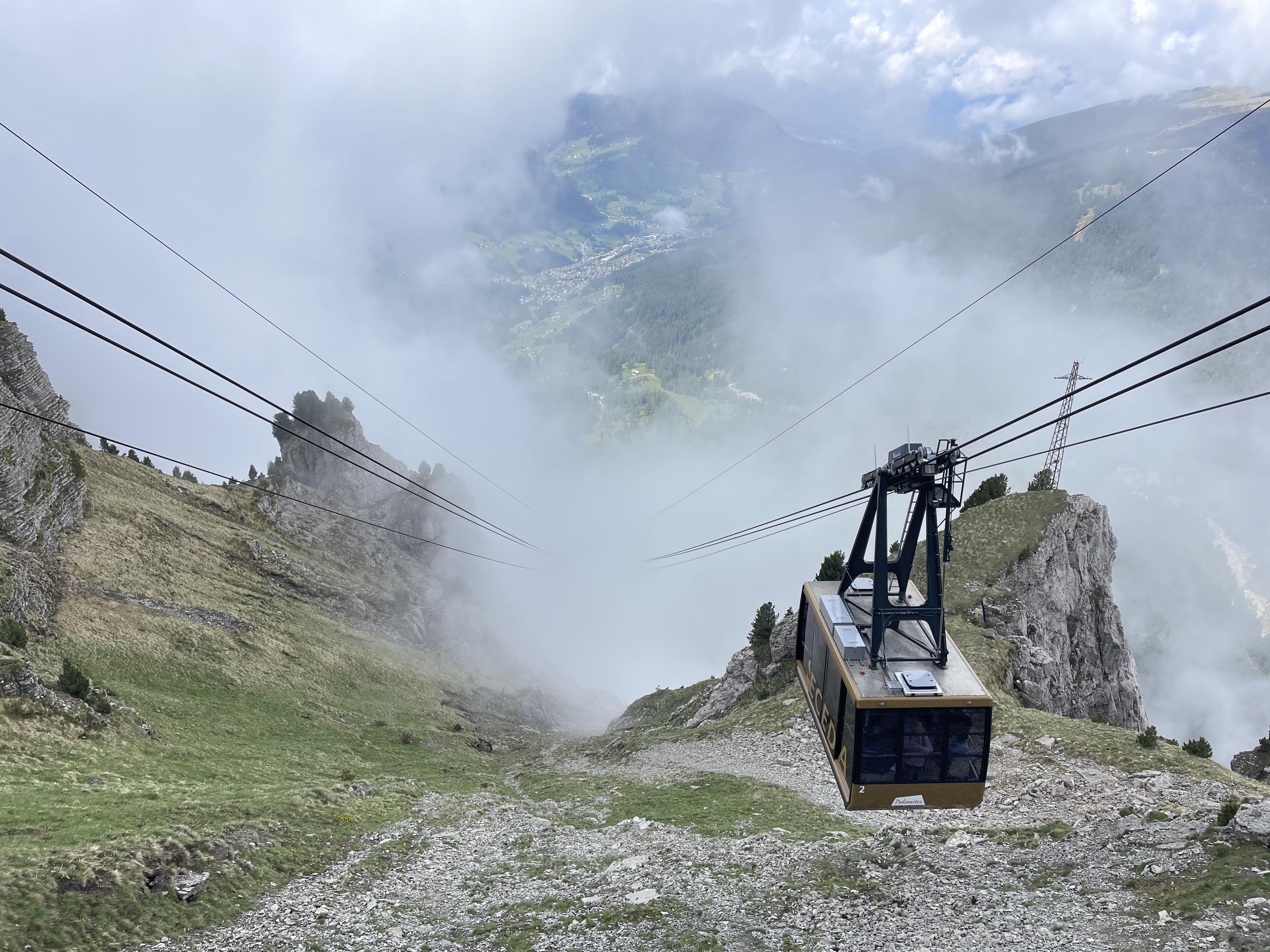 세체다로 올라가는 케이블카 탑승장에서 일일권 슈퍼섬머카드를 구매하여 케이블카에 오른다. 세체다에서 후네스까지 올라간 다음 미니 버스만 한 케이블카로 갈아타야 정상까지 올라갈 수 있다. 어제까지 낮게 드리운 구름이 아직도 머뭇거리듯 시야를 가리고 있다. 혹여나 세체다 정상에 칼날처럼 솟아오른 봉우리를 보지도 못하는 건 아닐까?