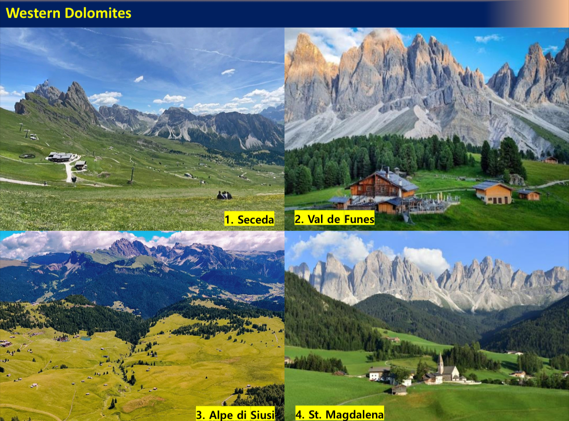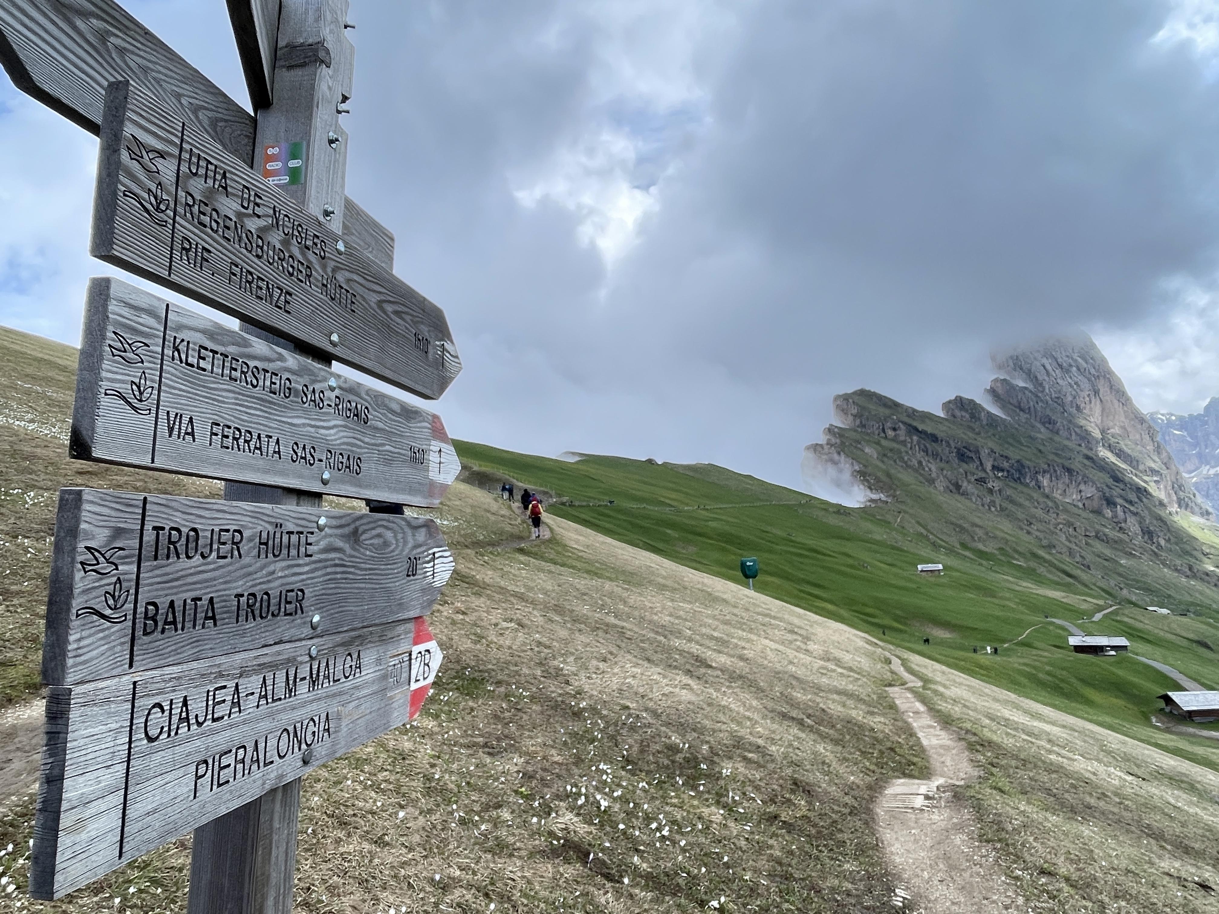 첫 단추가 어긋나는 바람에 일정을 조정하였다. 날씨가 좋지 않은 동부의 트레치메 트레킹 대신 날씨가 좋은 서부 돌로미티를 돌아보기로 한다. 당초 계획에 서부 돌로미티는 세체다와 알페 디 시우시를 각각 하루씩 일정으로 잡았으나 오늘 하루에 다 돌아보기로 한다. 대신 트레일코스를 대폭 축소하였다.