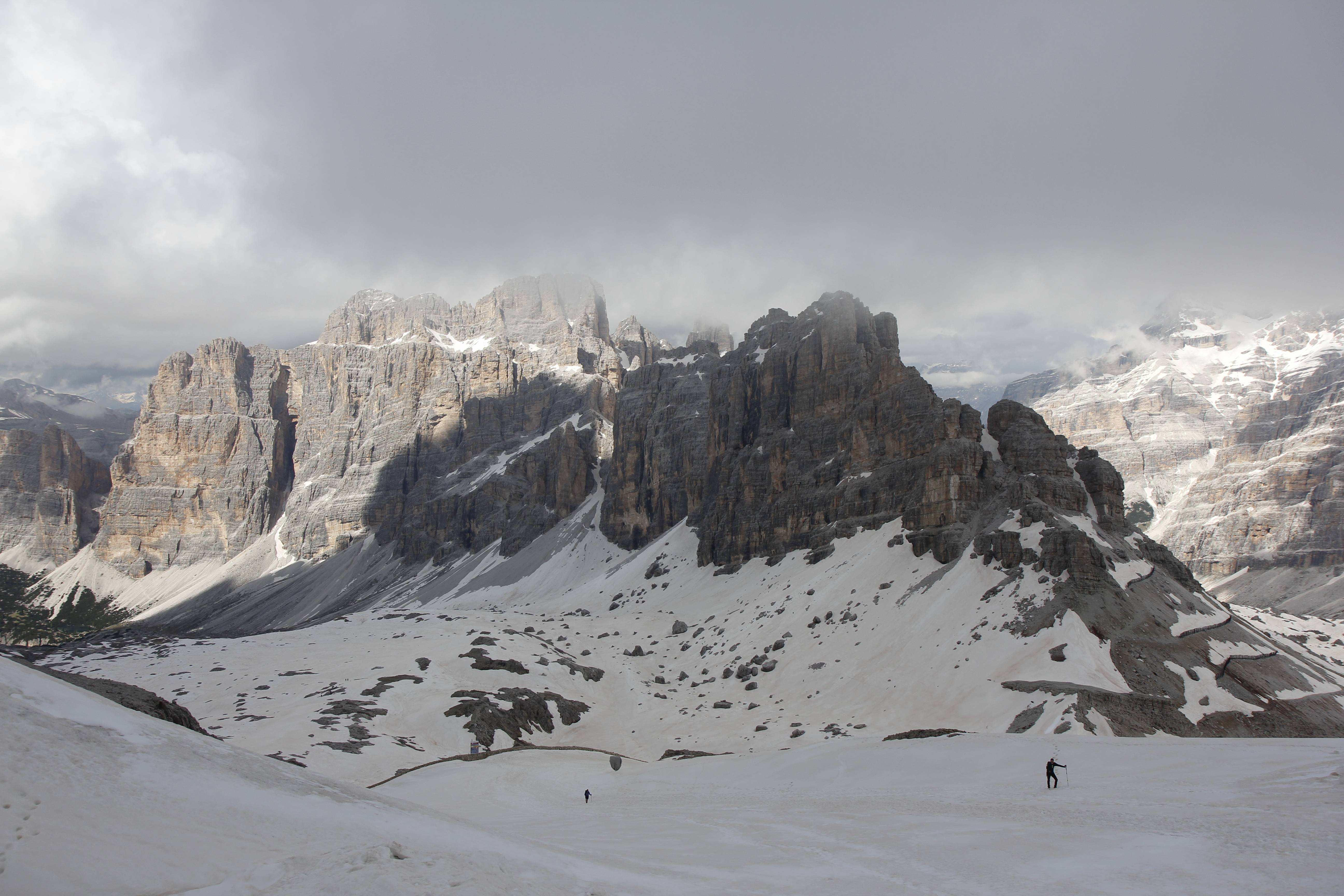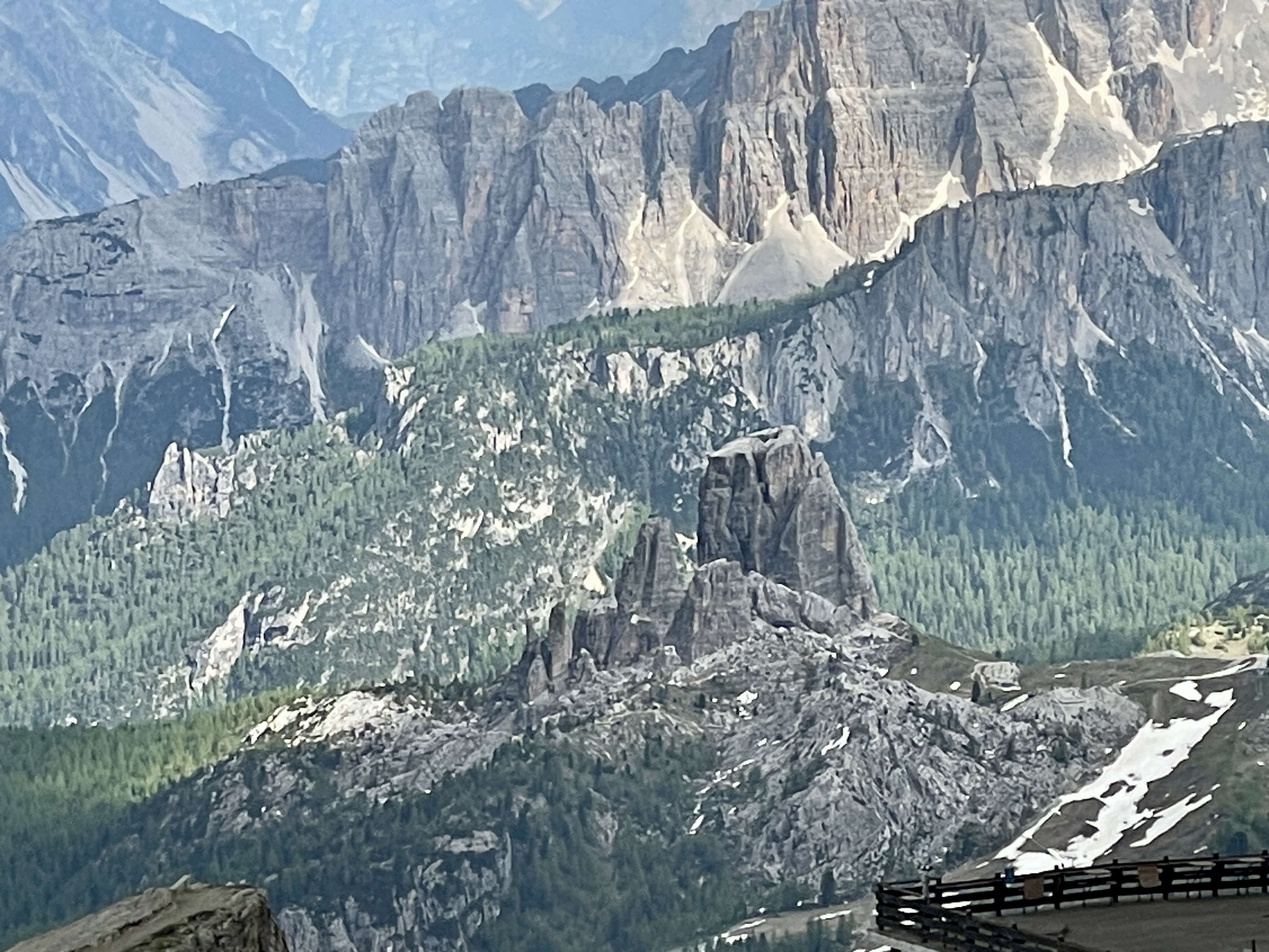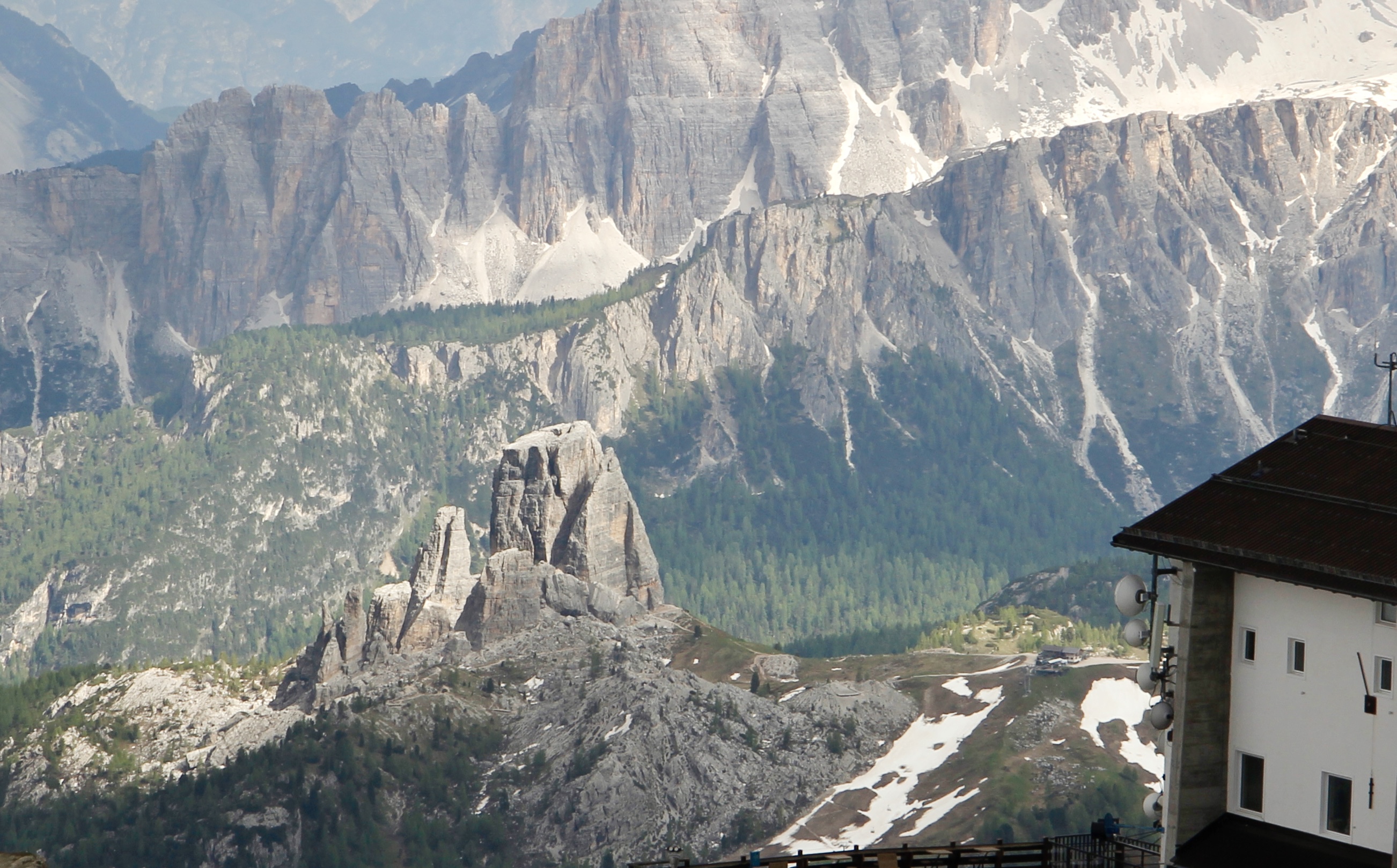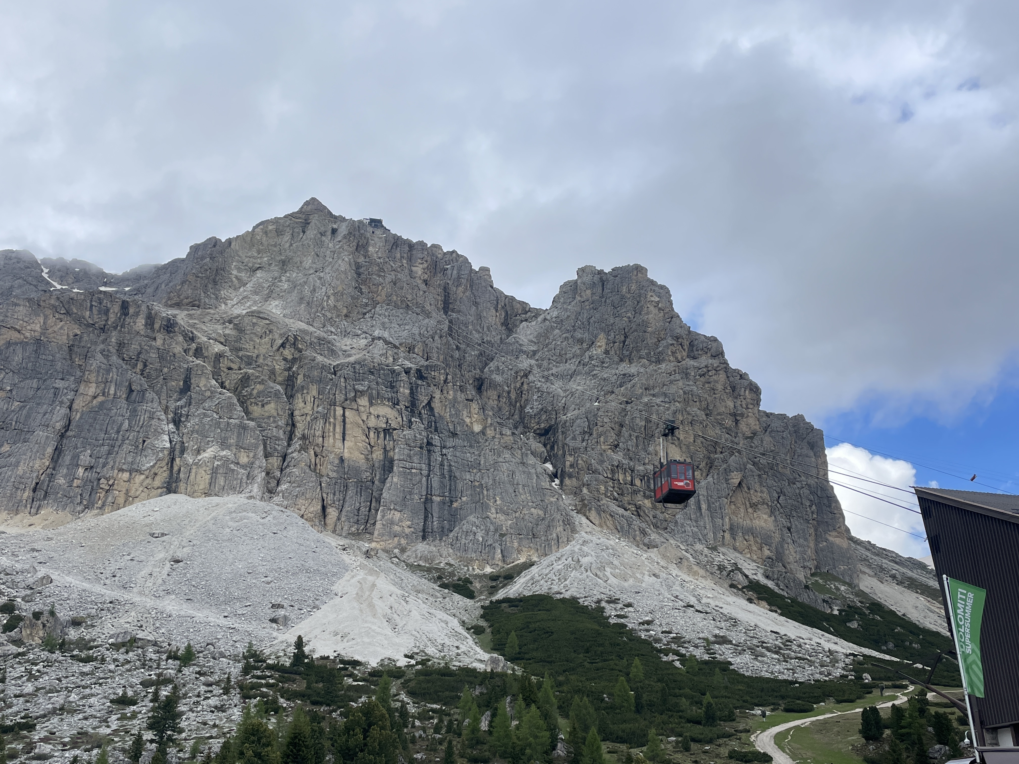 그것도 케이블카로 올라오자마자 일망무제로. 더구나 시야를 약간 낮은 곳에 두면 돌로미티 명소, 친퀘토리가 내려다 보인다. 마침 저녁 햇살을 온몸으로 받고 서있는 모습이 마치 우릴 보고 반갑게 인사하는 게 아닌가 하는 착각을 불러온다.
