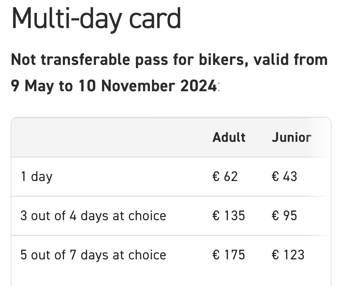 따라서 경제적으로 사용하려면 먼저 돌로미티에서 곤돌라나 케이블카 혹은 리프트를 타고 가야 할 코스들을 묶고 일정을 효율적으로 안분한 다음 그에 맞는 슈퍼섬머카드를 구매하는 게 맞다. 트레치메나 브라이에스호수는 곤돌라가 없는 곳이고, 알페 디 시우시는 오전 9시 이전에 방문하면 무료주차구역에 주차하고 넓은 초원을 마음껏 걸을 수 있으니 이런 정보를 미리 조사해 가는 방법도 필요하다.