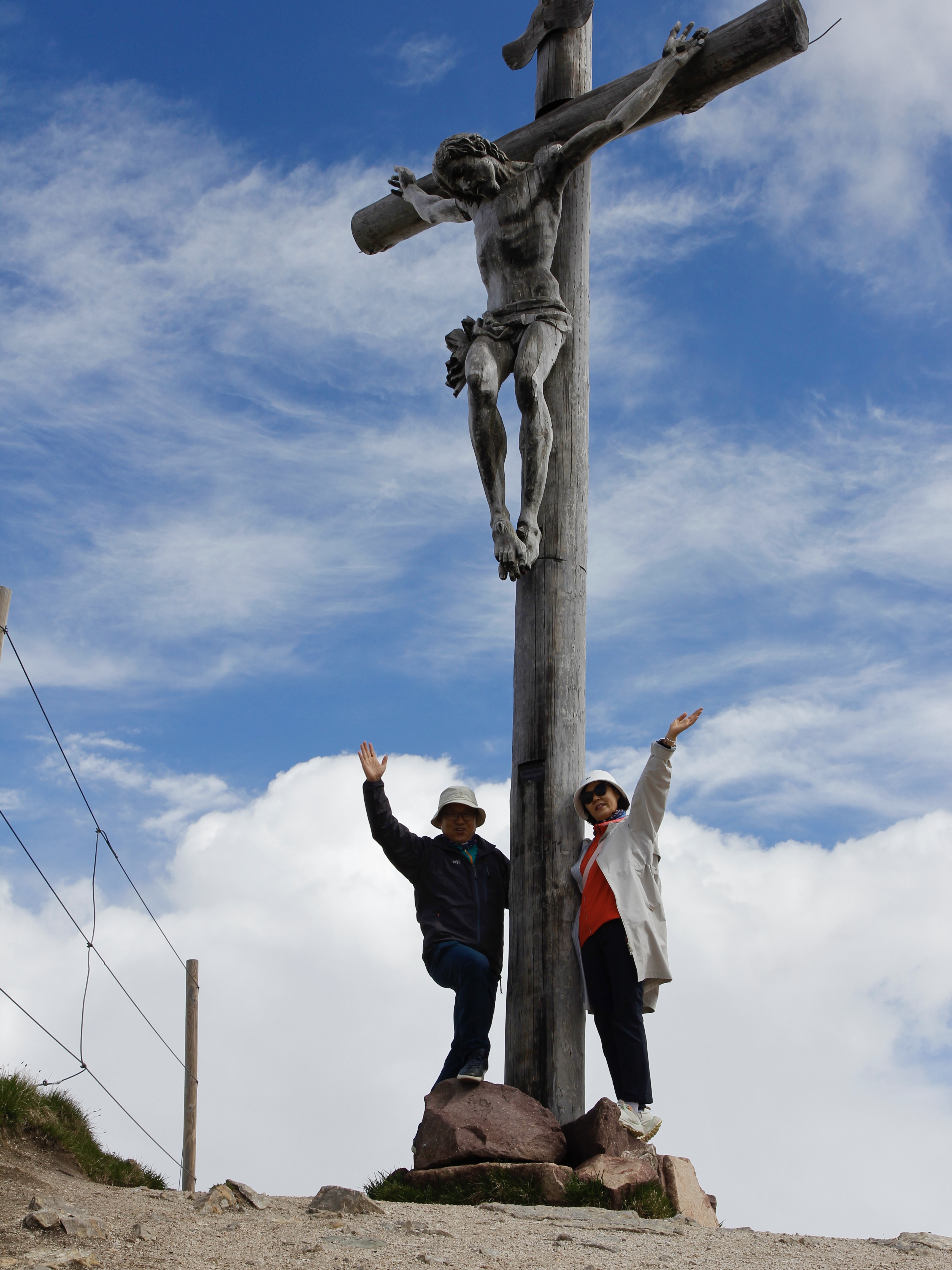 2518 고지에 서서 세체다를 올라온 산객들을 맞고 계신 예수님이 십자가에 매달려 계신다. 예수님께 우리도 올라왔다고 인사를 드리고 파노라마 포인트로 자리를 옮긴다. 구름이 오들레 산군 봉우리를 에워싸고 있어 믿기지 않는 경치를 보여주려 하지 않는다.
