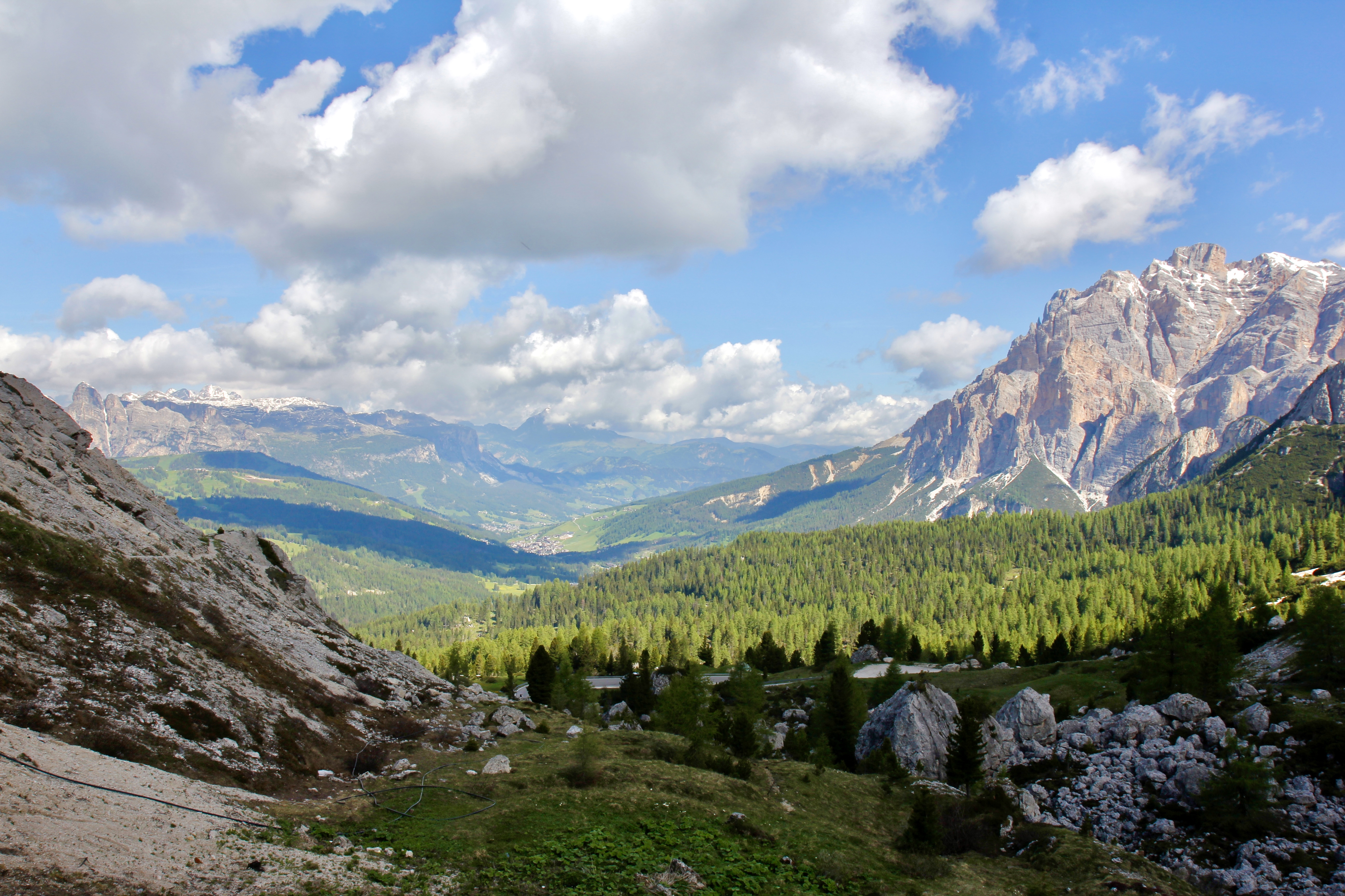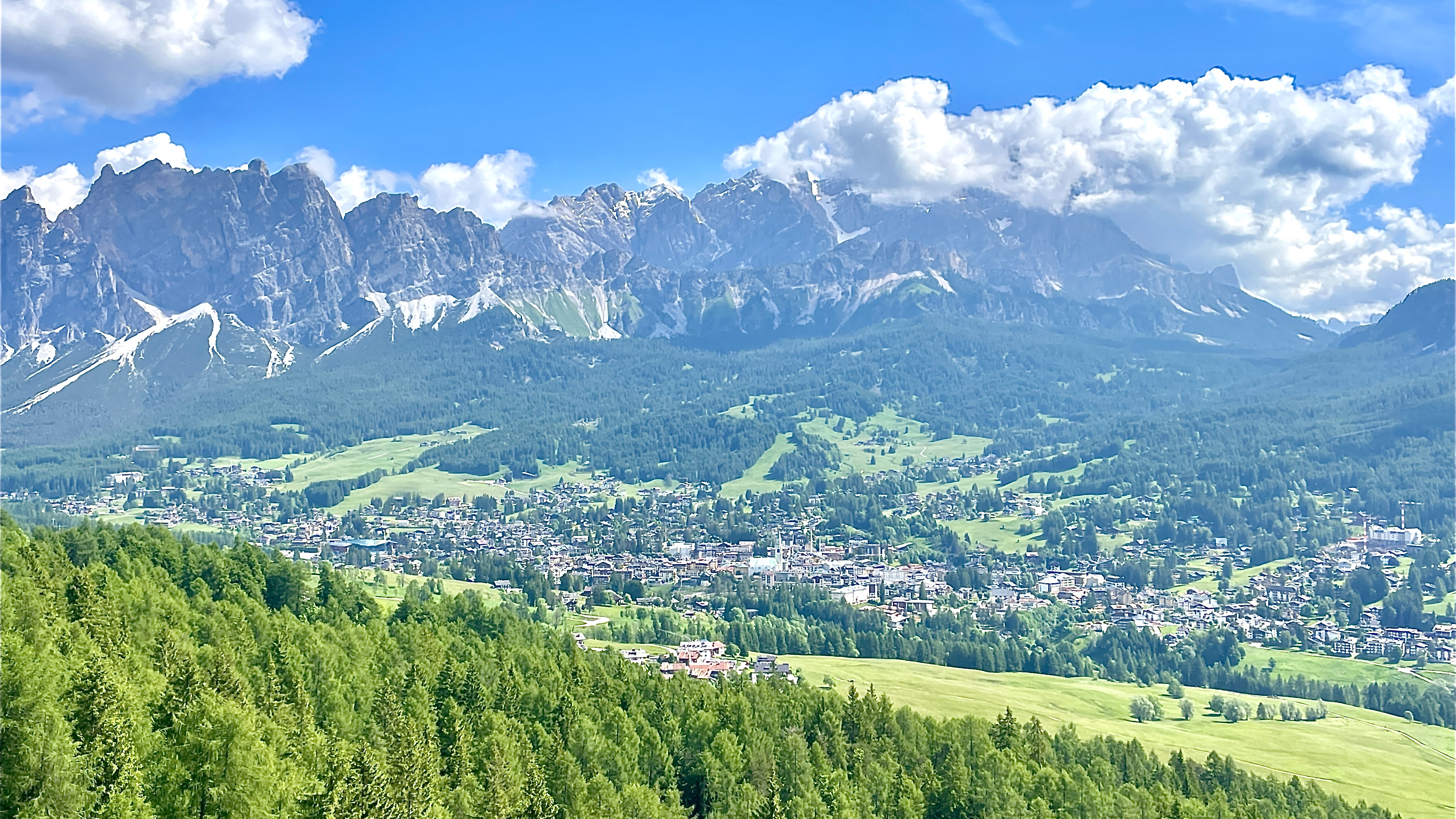 파쏘 팔자레고에서 내리막길을 따라 30분 정도 내려가다 보면 얇은 터널을 지난 지점에 전망대가 있다. 여기서 내려다본 코르티나 담페초는 깎아지른 듯 솟아있는 돌로미티 봉우리들 속에 파묻혀 있는 아담하고 귀여운 도시다.