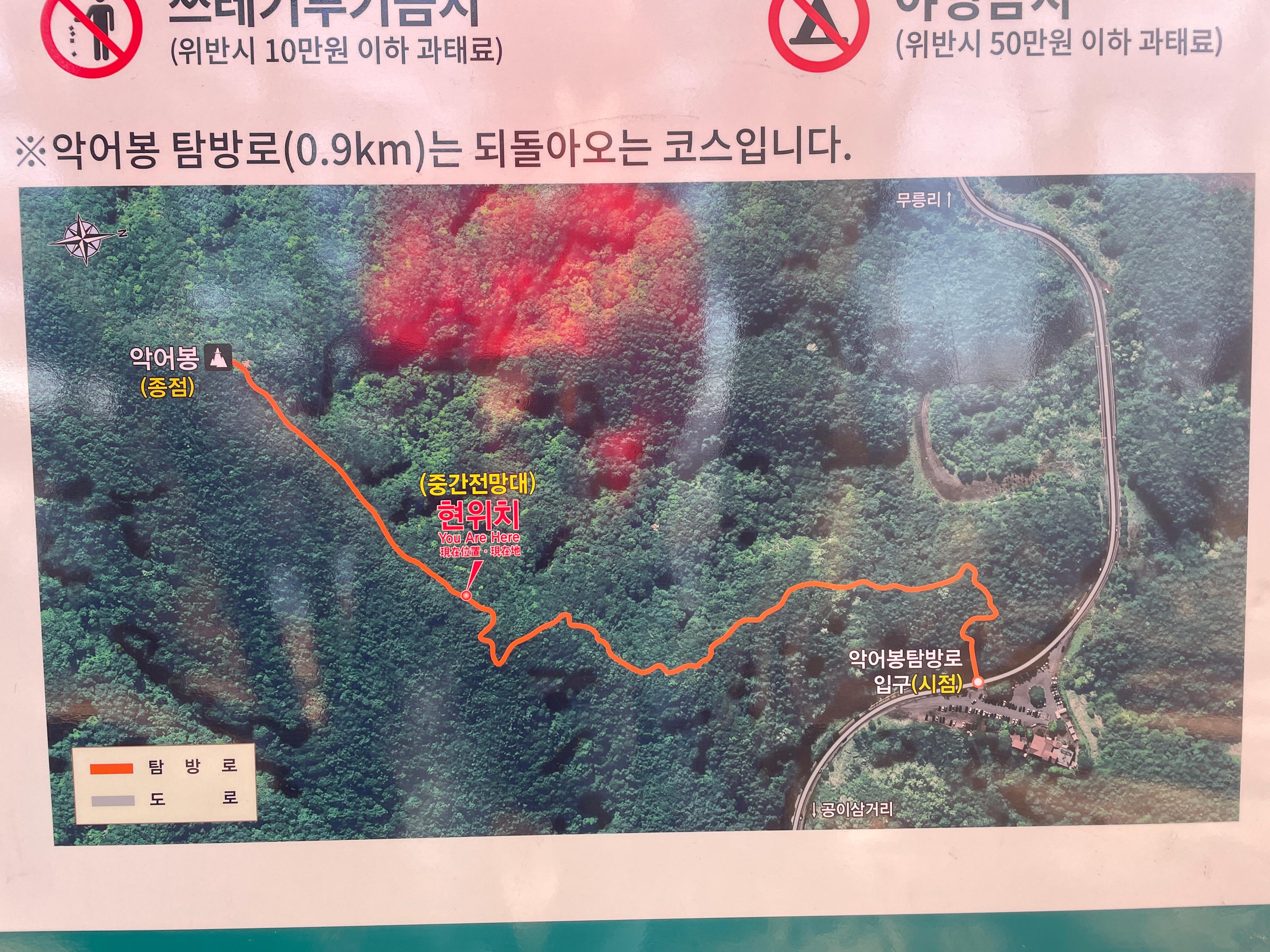 그다지 넓지 않은 주차장 한켠에 차를 세우고 다시 등산길에 오른다. 주차장에서 이정표를 따라 적당한 오름길을 걸어가는데 아내는 악어봉보다 걷기가 훨씬 수월하다며 앞서간다. 악어봉에서 만났던 산객들이 하산하며 왁자지껄 등로가 시끄럽다.