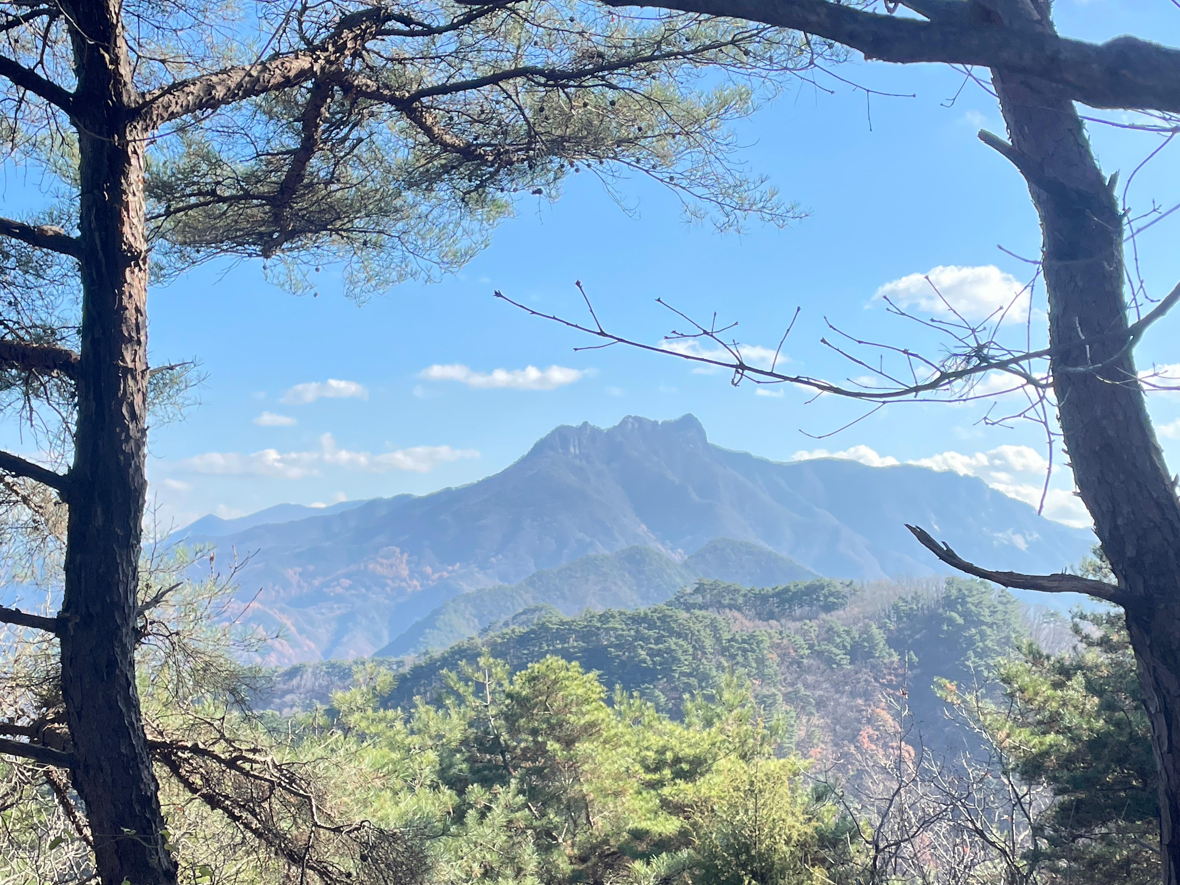 서둘러 오를 때는 미처 보이지 않던 주변의 산세들이 여유를 담아 내려올 때는 보이게 마련. 나무들 사이로 멀리 월악산 중봉이 날카롭게 솟아있다. 고도 1천 미터 남짓하지만 정상 부근의 깔딱 구간은 치악산만큼이나 악명이 자자한 봉우리로 우리 기억 속에 남아있는 월악산을 뒤로하고 하산을 서두른다.