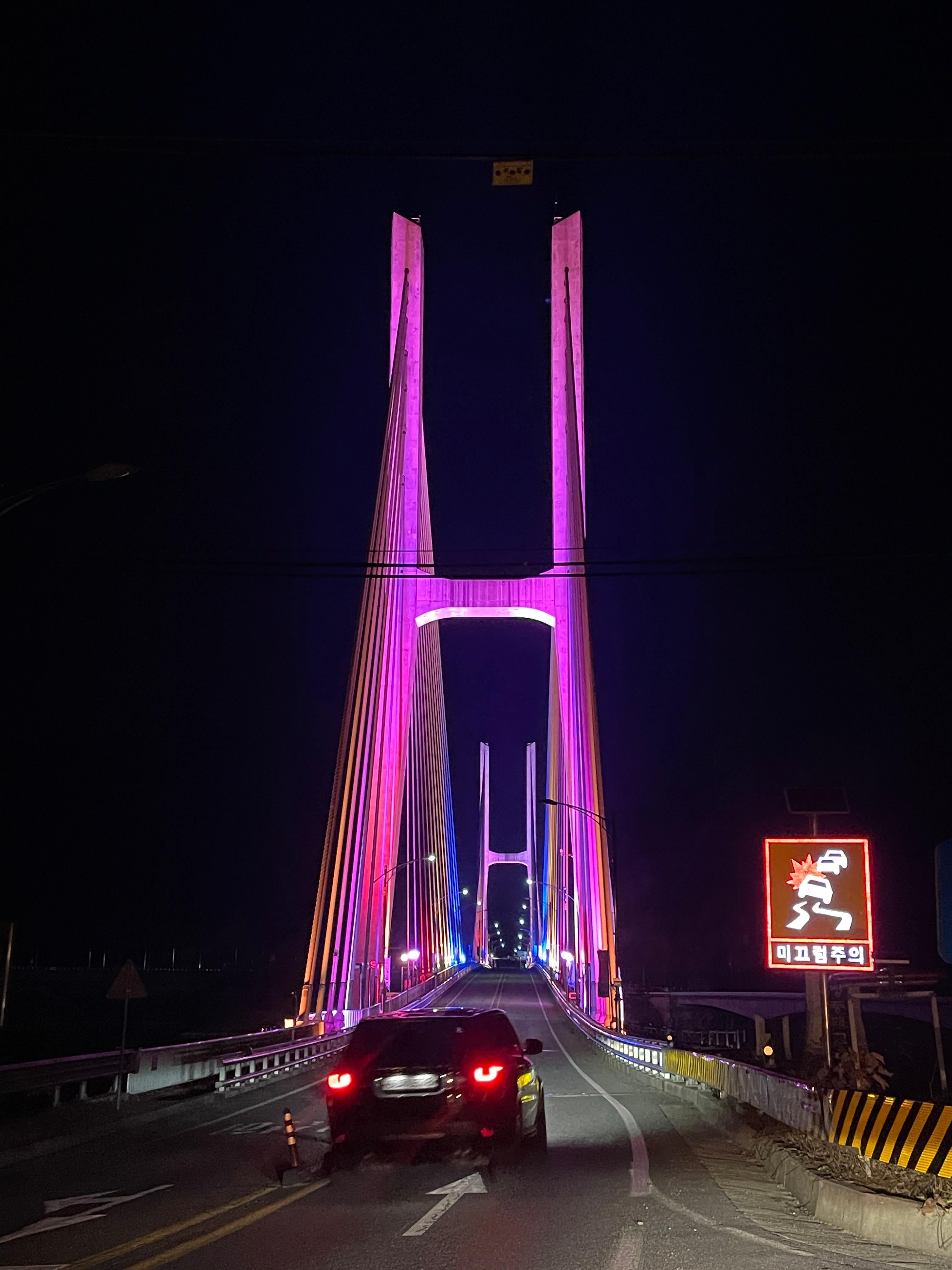 옥순봉을 마지막으로 늦가을 단풍여행을 마무리한다. 하산해 근처 식당에서 저녁을 먹고 귀갓길에 오른다. 청풍단지를 지나는데 경관조명을 받고 있는 다리가 핑크빛 색채를 뽐내고 있다. 다리가 발산하고 있는 핑크빛이 오늘 우리가 옥순봉과 구담봉, 악어봉에서 받은 감동을 대변하는 듯하다.