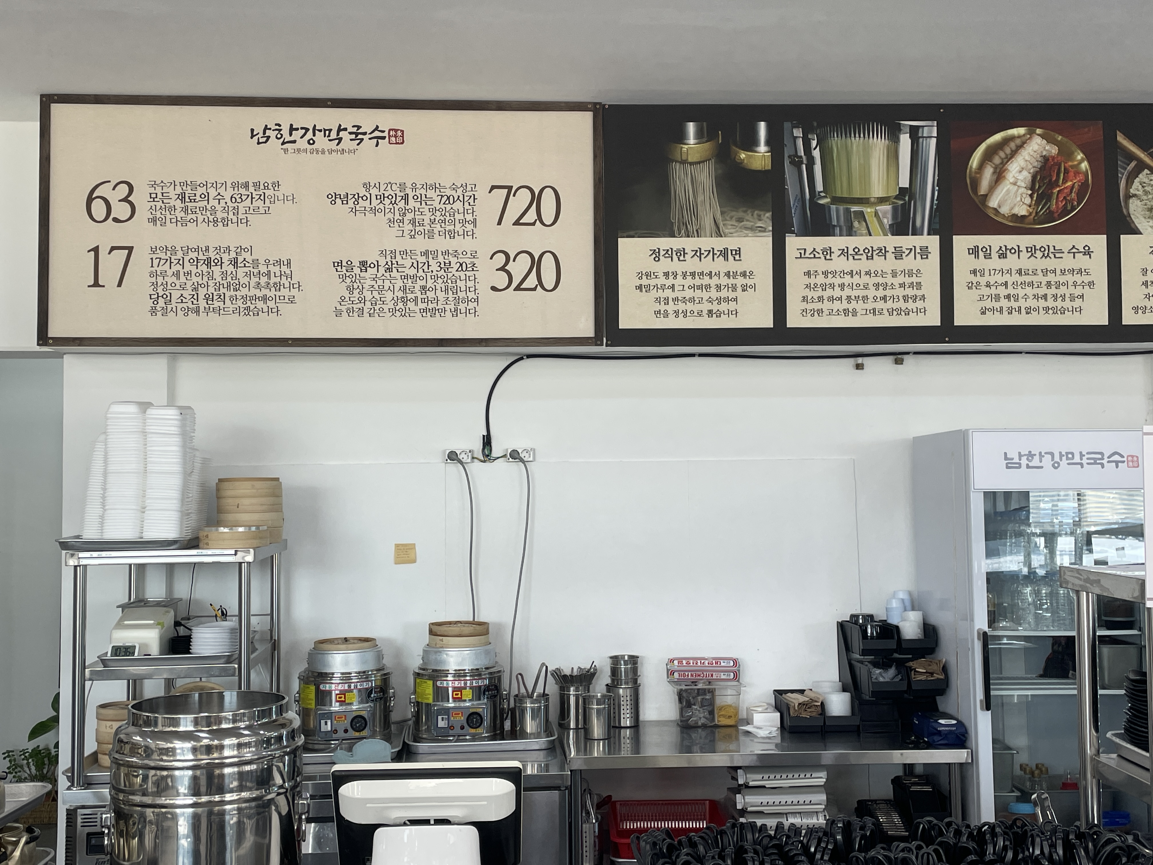 아침을 생략한 채 집을 나선 탓에 산행에 앞서 이른 점심을 먹기 위해 충주호 주변 맛집을 검색해 본다. 충주시내 못 미쳐 자리한 중앙탑공원 주뱐으로 막국수타운이 밀집되어 있다. 그중에서 방문후기가 가장 많으면서 평점이 높은 식당을 네비에 찍는다. 깔끔한 내부에 국산 식자재만을 사용한다는 자부심인 양 음식을 설명하는 판넬이 인상적이다. 정성껏 차려내 온 음식도 깔끔하고 담백하다.