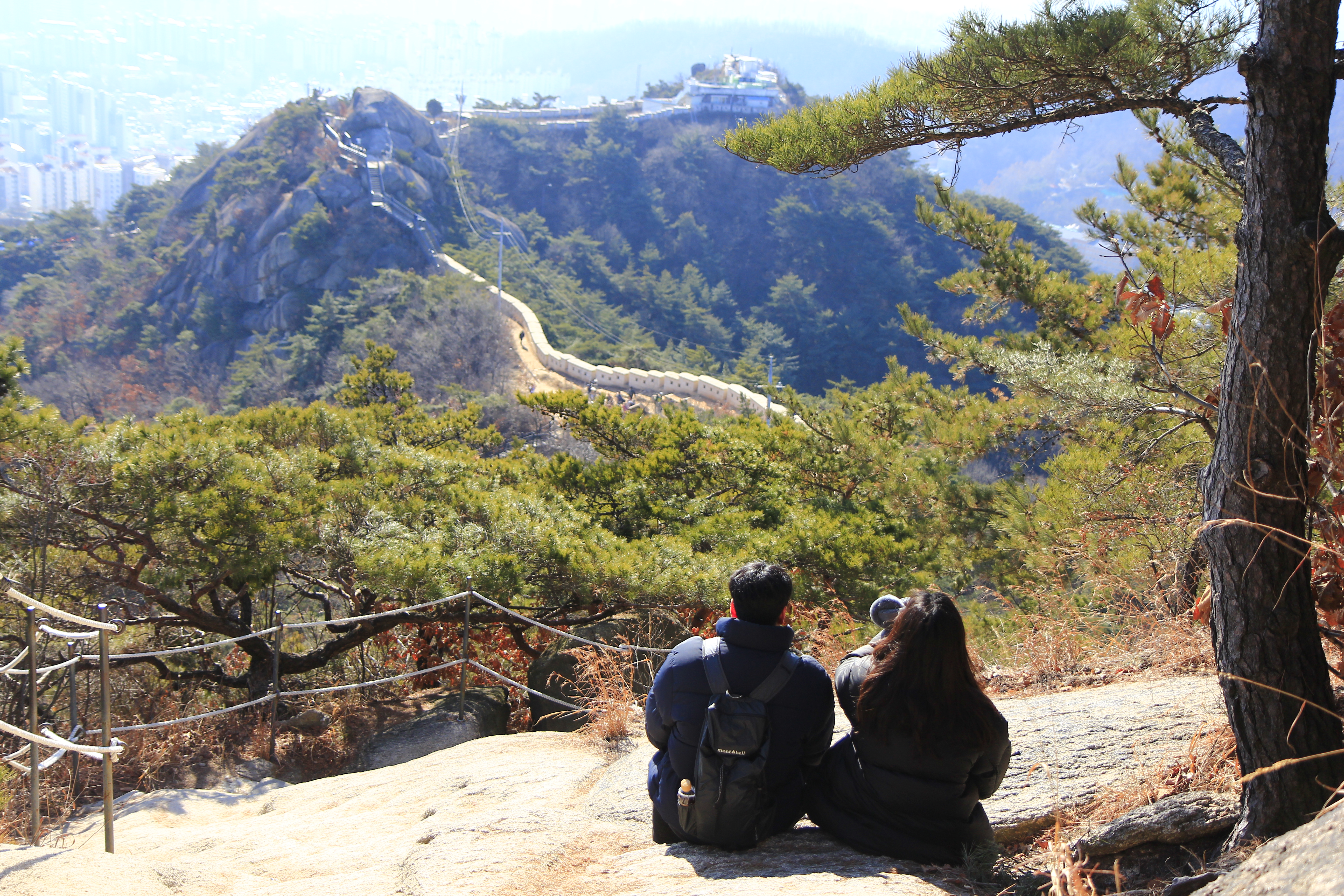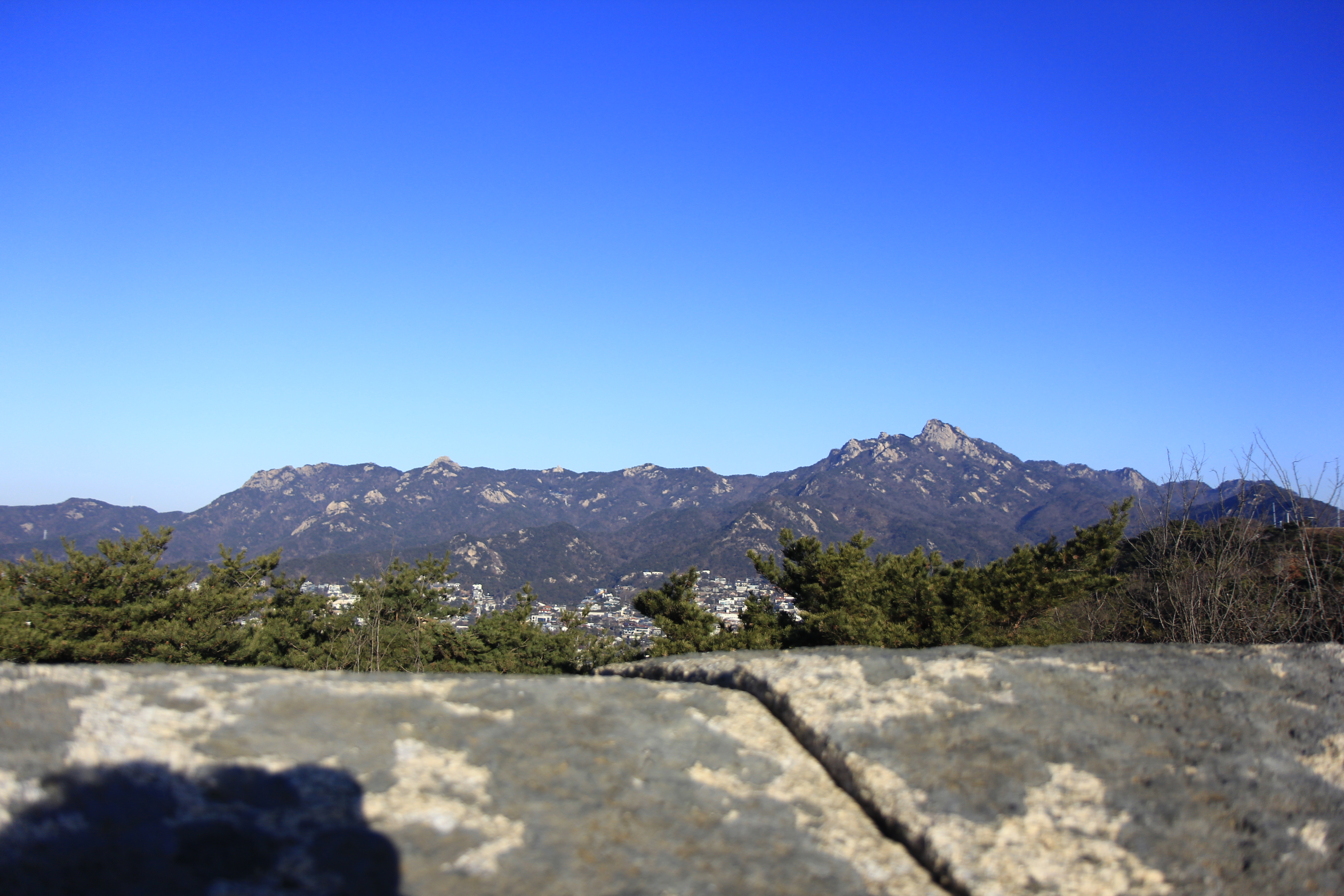 숙정문을 지나 백악곡장까지 가는 길은 사색의 길이다. 적당히 경사가 진 성안길에 느릿한 세월을 담담히 견뎌내 온 소나무군락이 제법 길게 이어진다. 이렇게 오른 길은 백악곡장에서 탁 트인 조망을 열어준다. 특히나 북악산과 인왕산 줄기를 한꺼번에 만나볼 수 있다.