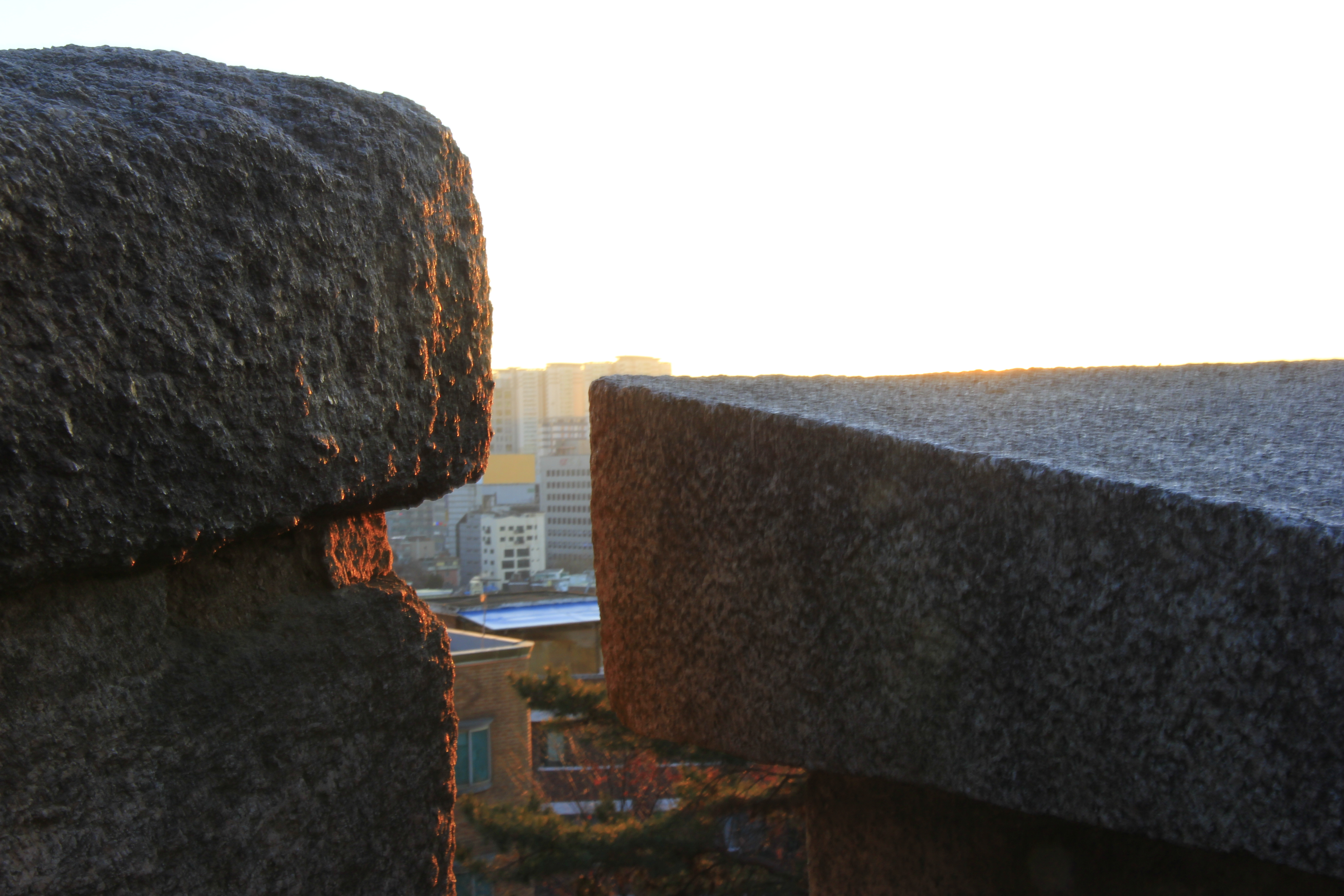 조금만 일찍 도착했으면 ’ 낙산에서 저 멀리 잠실벌 위로 떠오르는 일출을 맞을 수 있었을 텐데 ‘ 하는 아쉬움 속에 총안으로 새어드는 아침 햇살이 바라보며 언덕길을 부지런히 오른다.