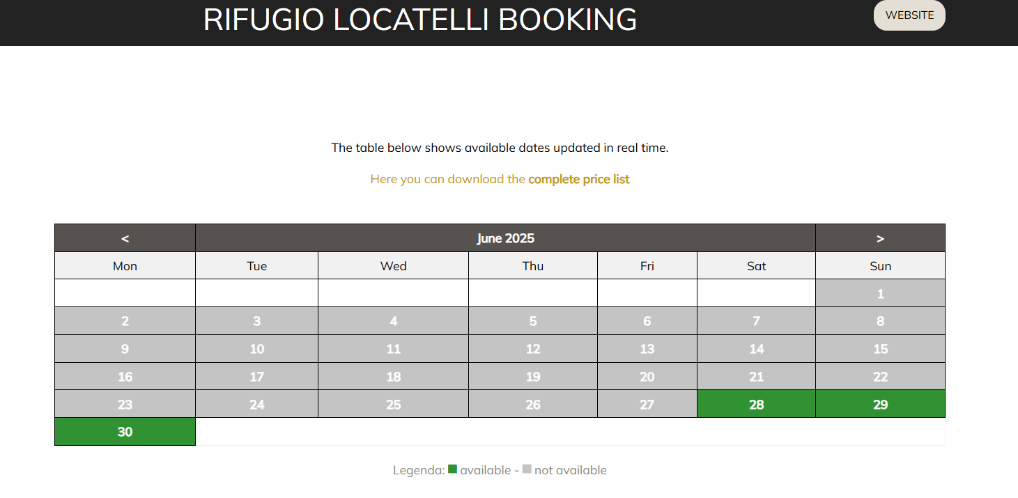 이들 산장 예약은 해당 산장이 운영하는 홈페이지에서 할 수 있다. 구글이나 인터넷에서 산장 홈페이지를 방문하면 예약 창으로 바로 연결되는 'BOOKING' 아이콘이 있다. 이걸 클릭하여 희망하는 일자와 인원을 입력하고 예약을 누르면 예약 가능여부를 알려준다. 로카텔리산장이나 라가주오이산장은 예약 가능한 다른 일자를 알려주는 친절을 베풀지만 가능한 일자나 베드 수가 한정적이다. 각 산장별 예약 홈페이지는 다음과 같다.