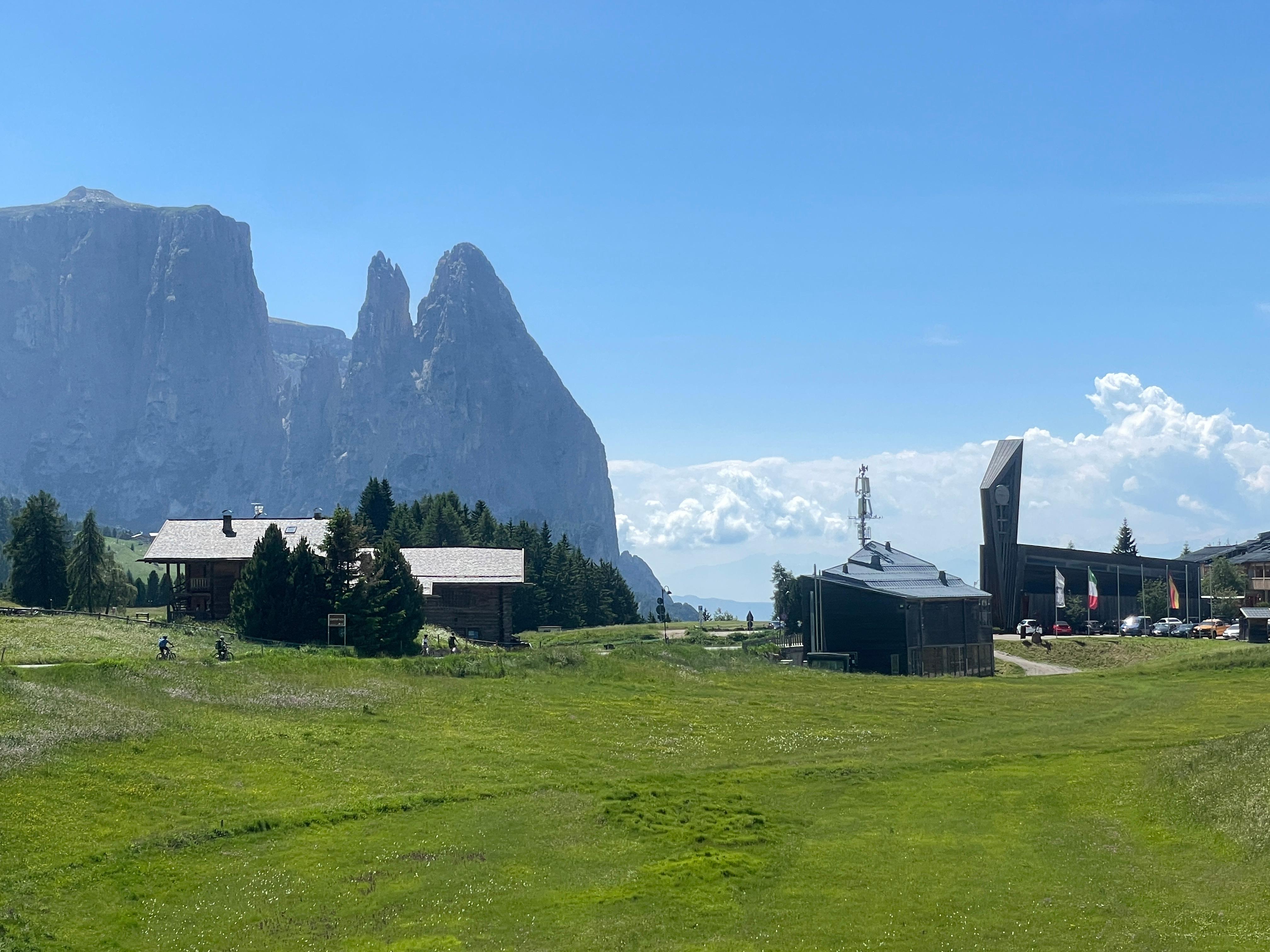 오르티세이 곤돌라탑승장에 주차하고, 대롱에 매달인 무당벌레 같은 곤돌라로 몬트셐에 도착한다. 곤돌라타워 마당으로 나오니 광활한 알페 디 시우시 평원이 시원스레 펼쳐진다. 오늘따라 날씨마다 푸르디푸르다.