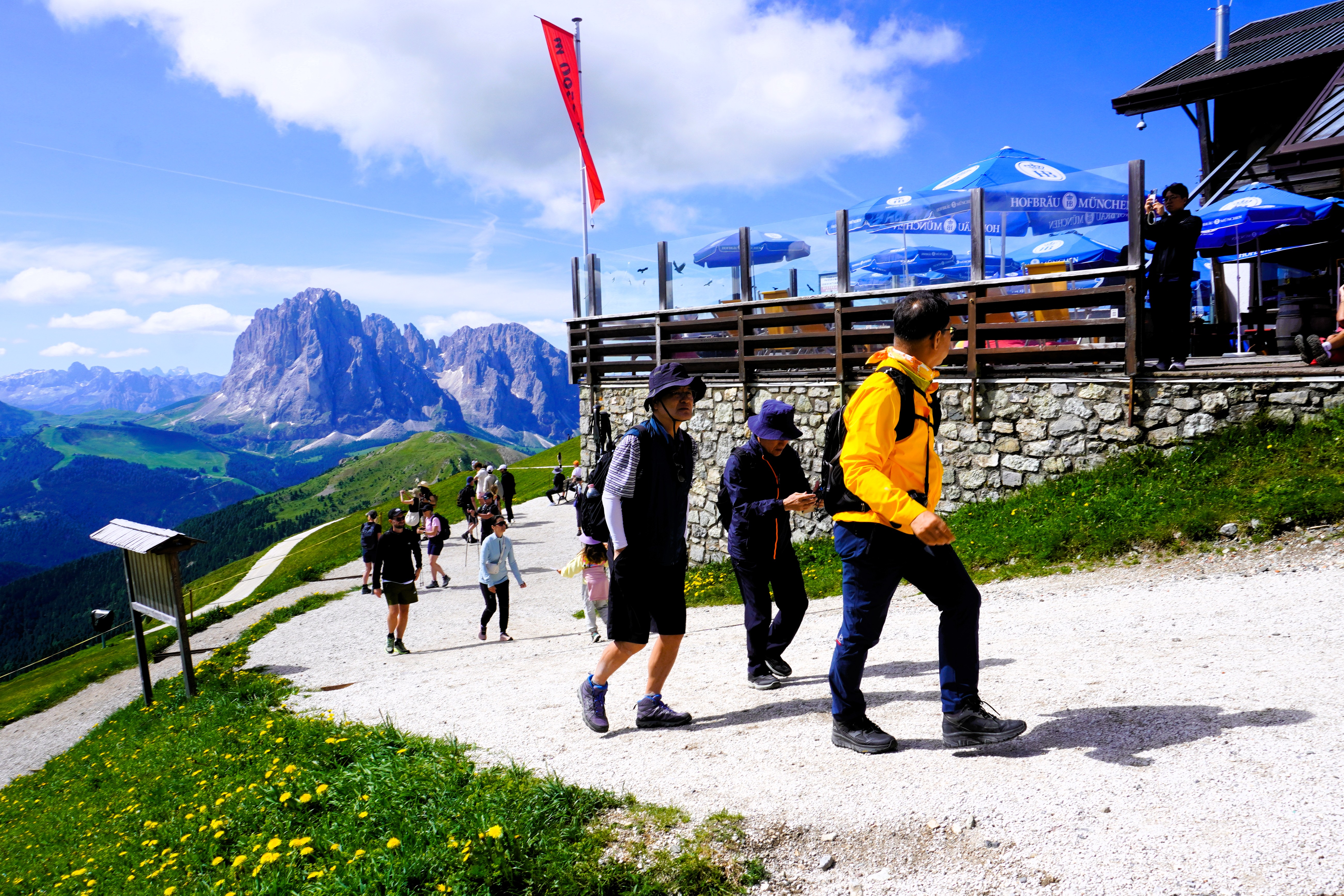 콜 레이저(Col Raiser)에서는 산타 크리스티나로 내려가는 리프트가 있고, 아침에 우리가 내린 세체다 2500으로 올라가는 리프트 승강장도 같은 위치에 있는 걸로 착각했다. 이 착각은 일행들에게 왔던 길을 되짚어 올라가는 짜증스러운 고행을 불러오게 한다. 다행히 산꾼친구의 적절한 판단으로 세체다로 올라가는 승강장을 찾을 수 이어 다행. 온 길을 되짚어갈 힘을 보충하기 위해 산장에서 시원한 맥주 한잔을 들이켠다.