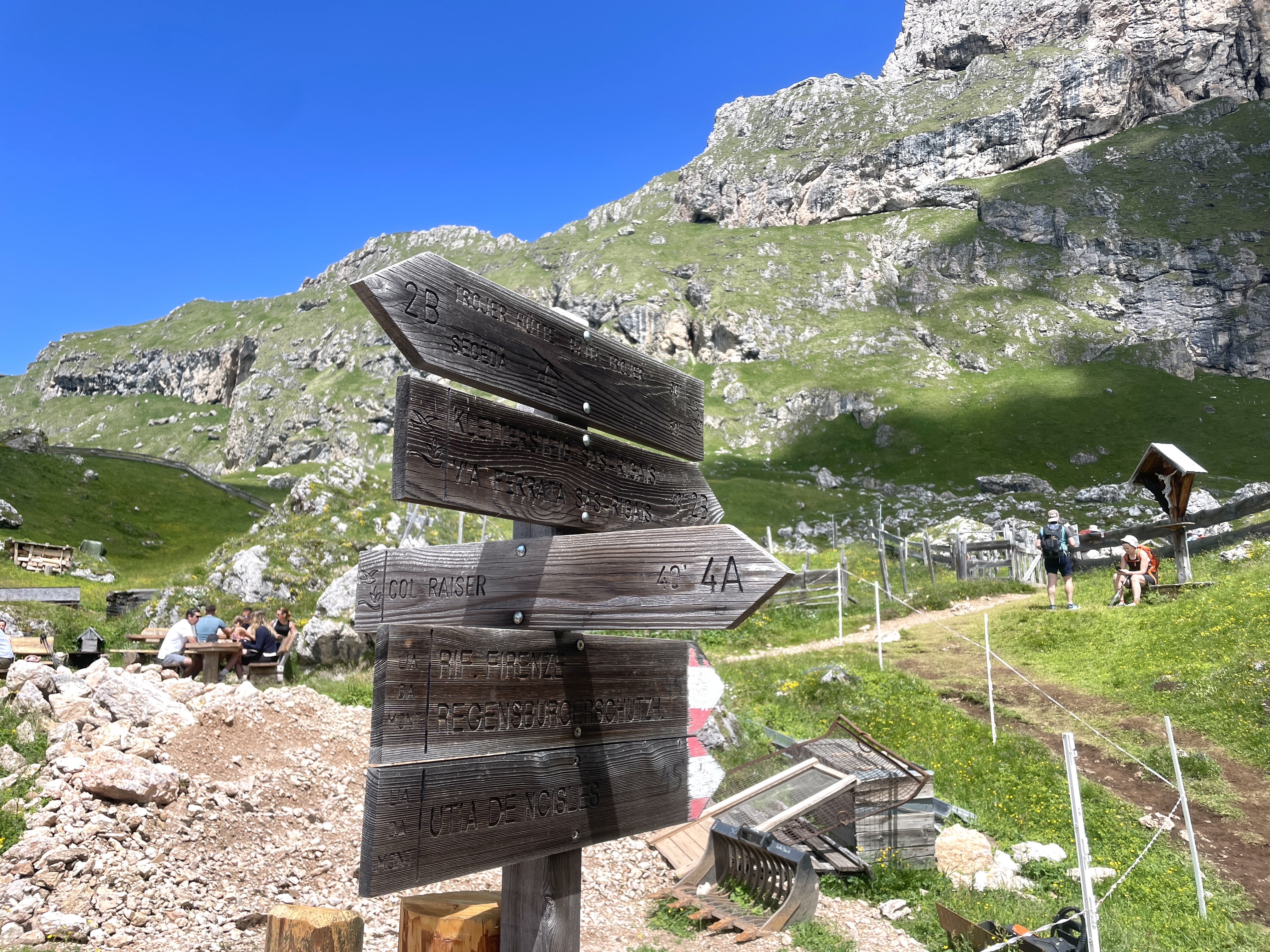 산장에서 출발한 우리는 계획한 트레일 13B를 잊고 Col Raiser 이정표만 생각하다 보니 트레일 4B로 들어선 걸 한참 뒤에 알아차렸다. 아니다! 나만 알아차렸고 친구들은 나만 의지하고 가니 맞는 길인줄 알고 있는 거다. 어쩌랴! 길을 잃고 걸어도 마냥 즐거운 걸.