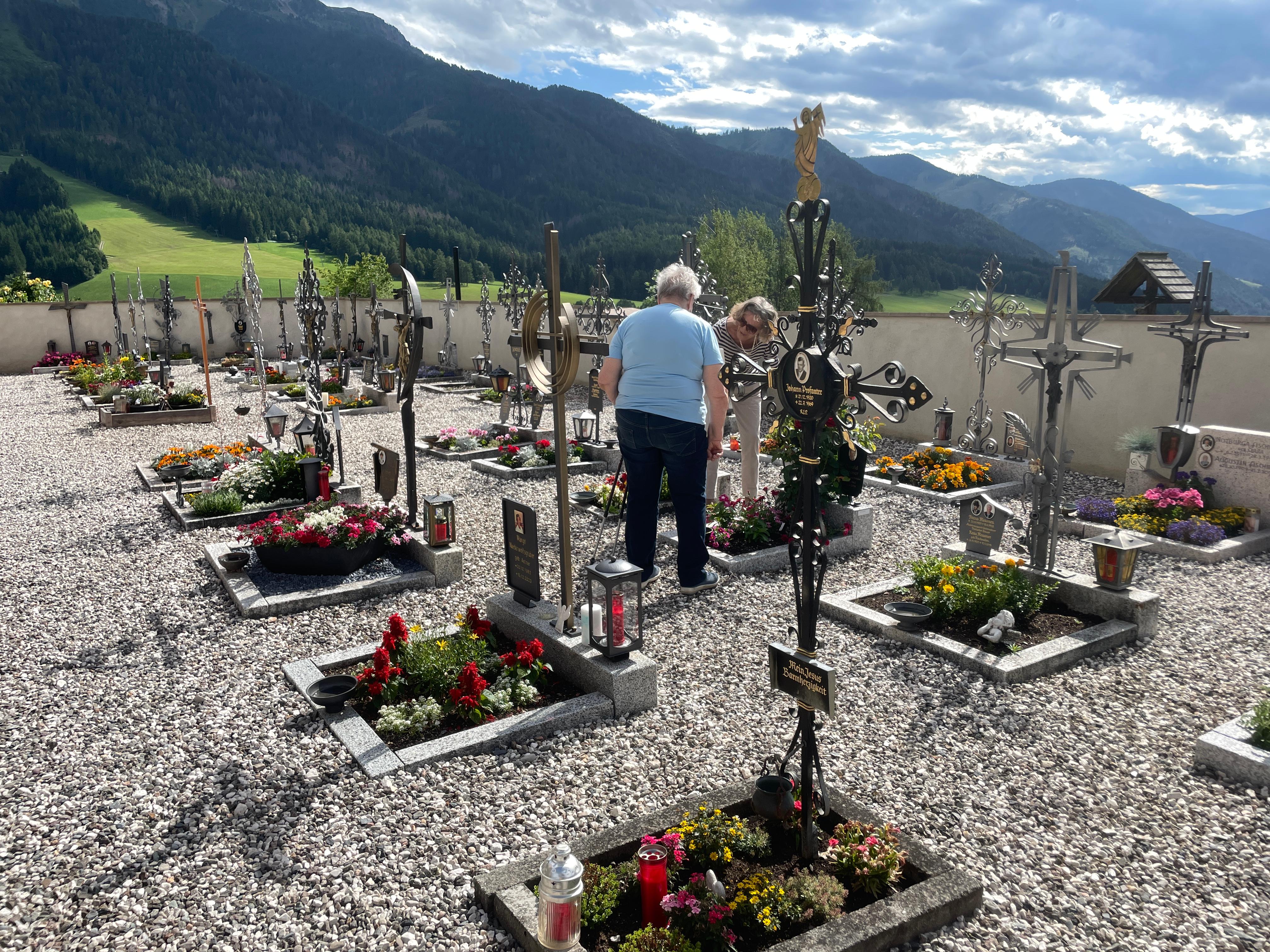 주차장에서 이 명작을 찍을 수 있는 뷰 포인트까지 20여분을 걸어야 한다. 중간에 서있는 교회룰 둘러본다. 마당 에는 공동묘지가 자리 잡고 있다. 어느 분의 유족인지 두 분이 묘지 곁에 서서 얘기를 나눈다.