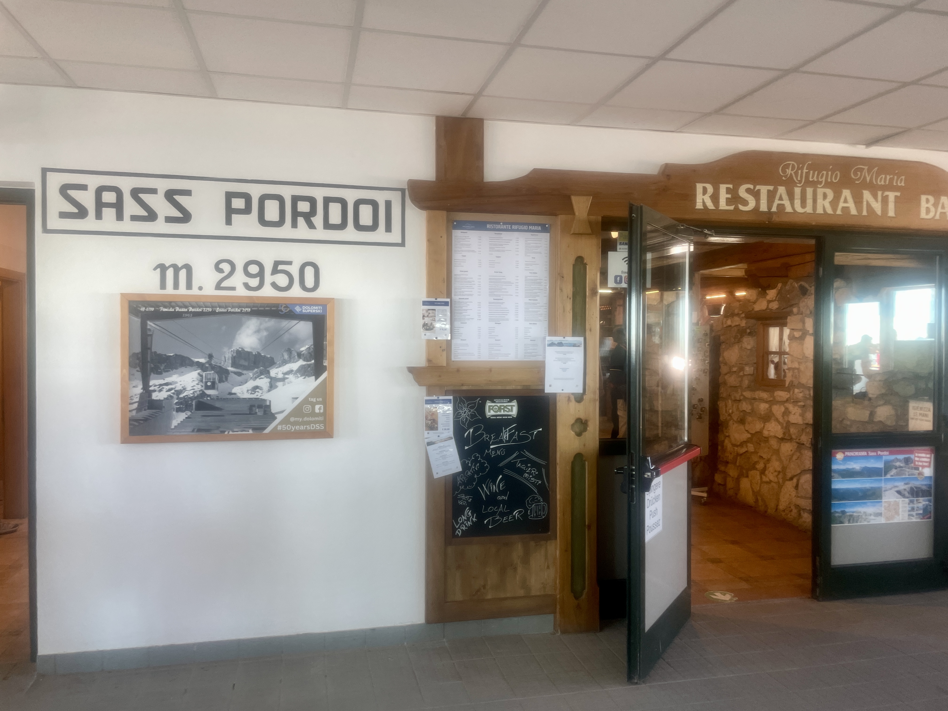 이번 여헹에서 해발고도가 가장 높은 3,152m 피츠 보에산장을 걸어서 올라가는 날이다. 파쏘 포르도이에서 케이블카를 타고 2,950m에 있는 마리아산장에 도착해 트레일 627 -> 638을 따라 피츠보에 정상의 파싸산장(Rifugio Fassa)까지 오른 다음 다시 마리아산장으로 내려올 예정이다.