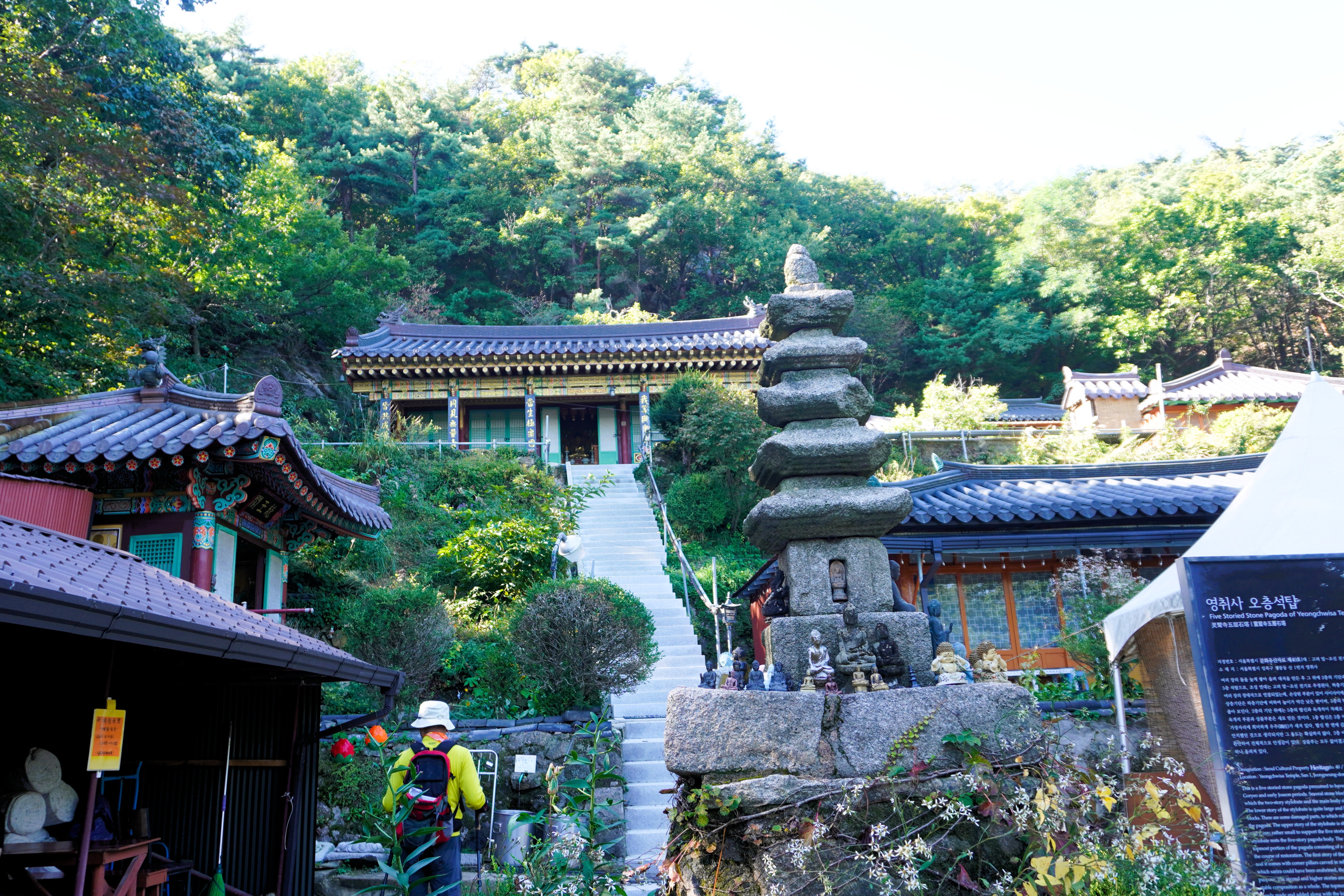 영취사에 들러 잠시 목을 축인다. 북한산 안에 세워진 절은 돈이 많아선지 대부분의 가람이 신축 건물이다. 어지간한 높이에 있는 절은 나이 들거나 시주가 높은 분들이 쉬이 왕래케 하느라 차가 올라온다. 심지어 셔틀버스를 운행하는 절도 있다. 하지만 이 절은 땀깨나 쏟아야 올 수 있다. 대웅전으로 오르는 계단 옆에 정안수에서 물 한잔 공양받고 다시 하산길에 오른다.