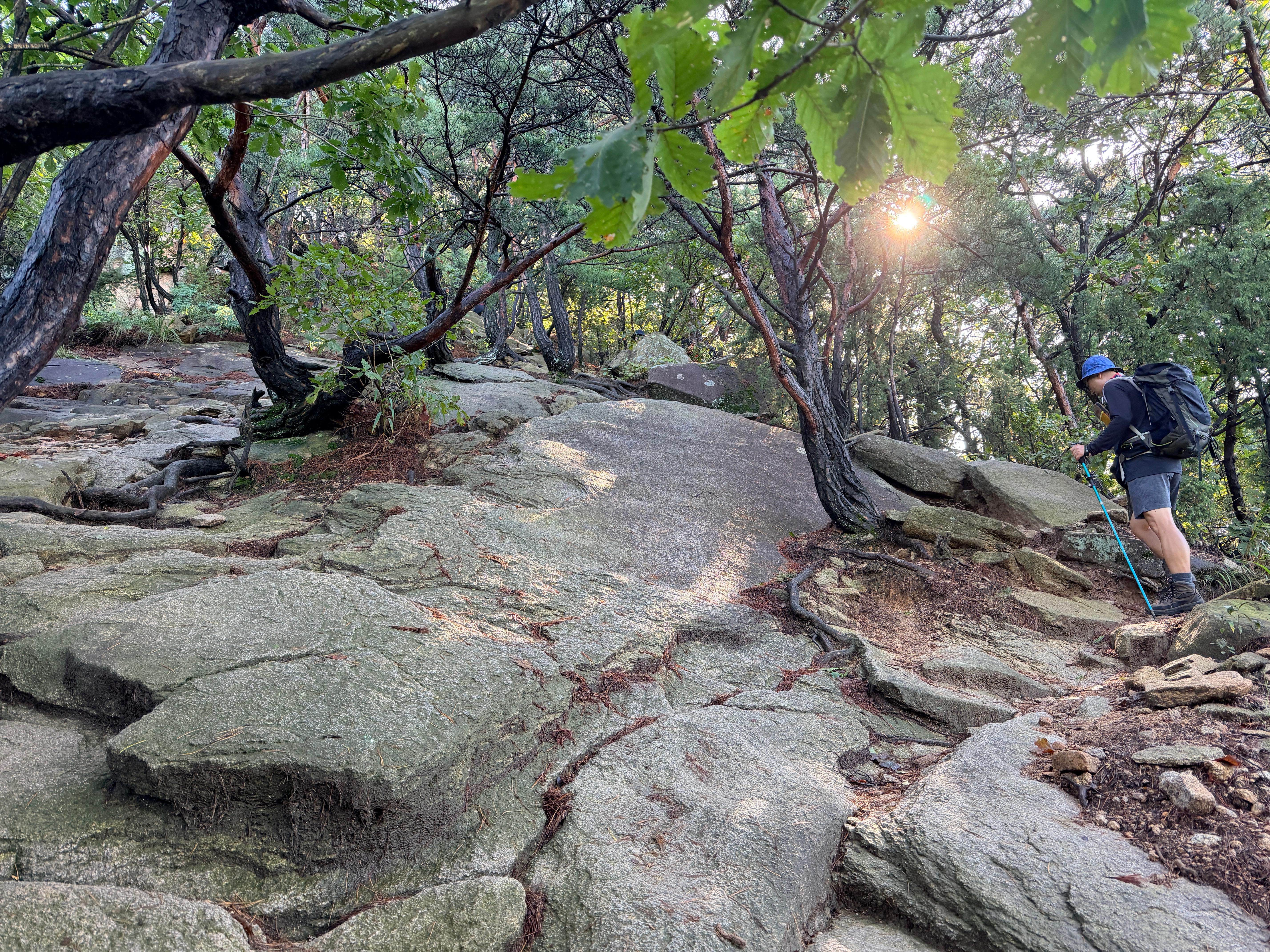 일단 바위에 걸터앉아 호흡도 가다듬고, 속도 진정시켜 본다. 친구는 산행을 하려면 아침을 먹고 와야지!! 하며 걱정 담긴 충고를 한다. 아침을 먹으면 오히려 더부룩하길래 늘 스킵하였는데 오늘처럼 힘을 쏟아야 할 때는 속을 든든히 채워야지 않을까!! 잠깐이지만 쉬면서 가라앉은 숨소리 덕에 속도 어느 정도 진정된 느낌이다. 다시 산행을 이어가 본다.