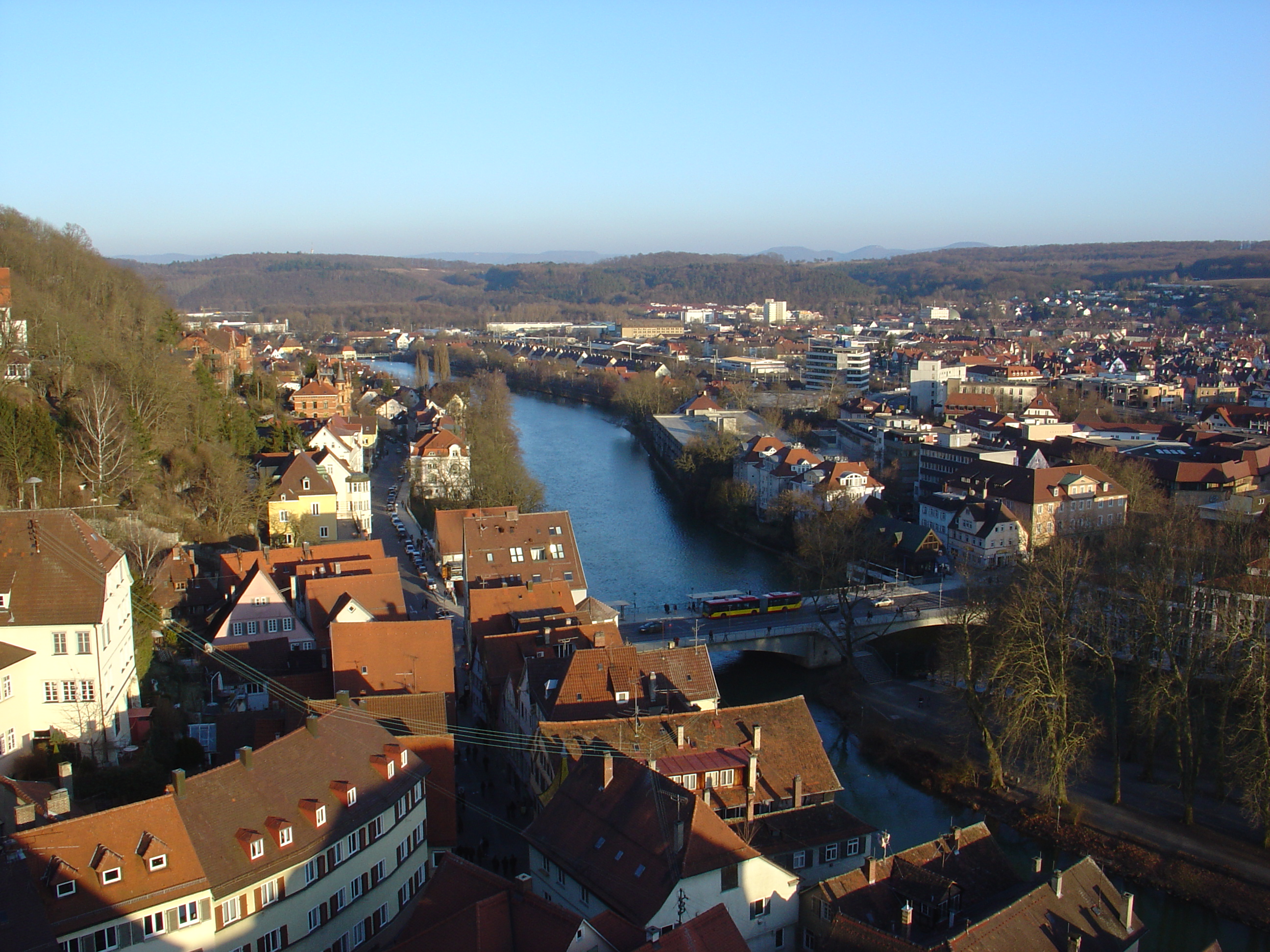 1995년엔 한 잡지에서 세상에서 가장 살기좋은 도시로 뽑히기도 했다. 도시 한가운데를 흐르는 네카강을 중심으로 북쪽은 중세풍의 모습을 그대로 간직하고 있다. 도시 자체가 낭만적인 분위기를 품고 있어, 독일의 유명한 헤겔같은 철학자와 헤르만 헤세, 괴테같은 문학가들이 젊은시절을 이곳에서 보냈다고 한다.